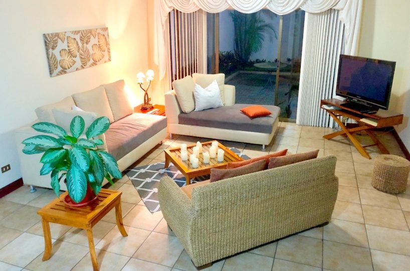 It has 171m2 + 30 m2 of common areas. It is fully furnished and equipped located in exclusive Residencial Trejos Montealegre, Escazú.