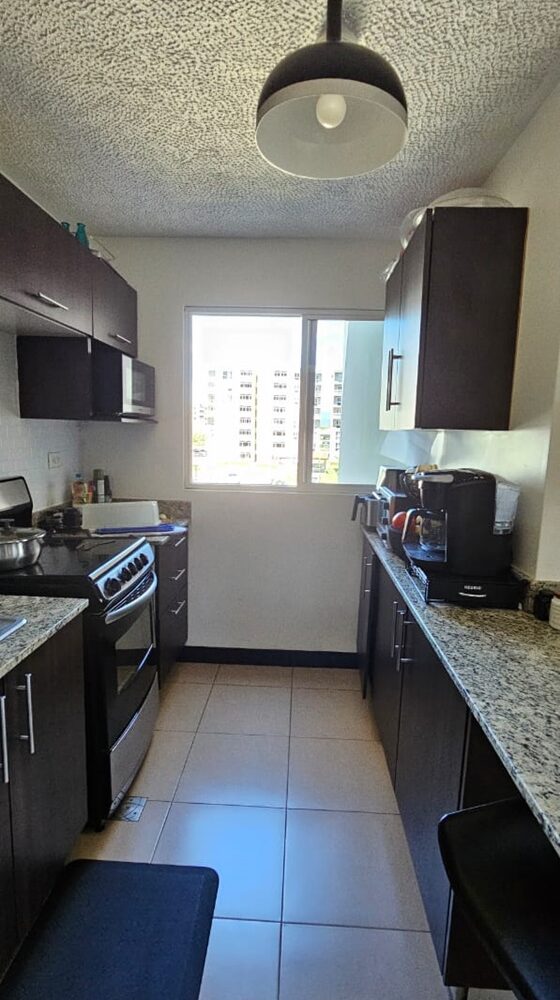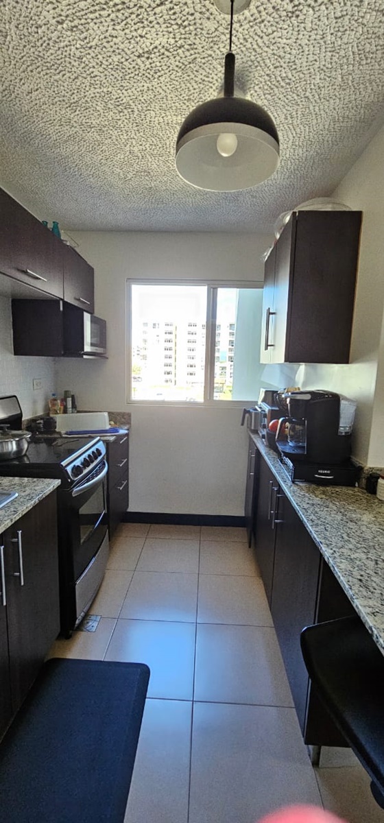 El apartamento ofrece una cómoda área social con amplios ventanales que le permiten mucha luz natural y frescura y desde el balcón, una vista impresionante. Posee además cocina integrada, con desayunador, área le lavandería, 3 confortables habitaciones, 2 baños completos y estacionamiento para dos vehículos.