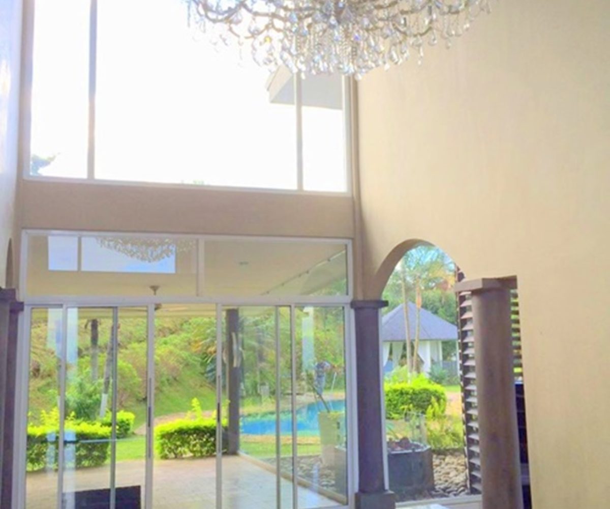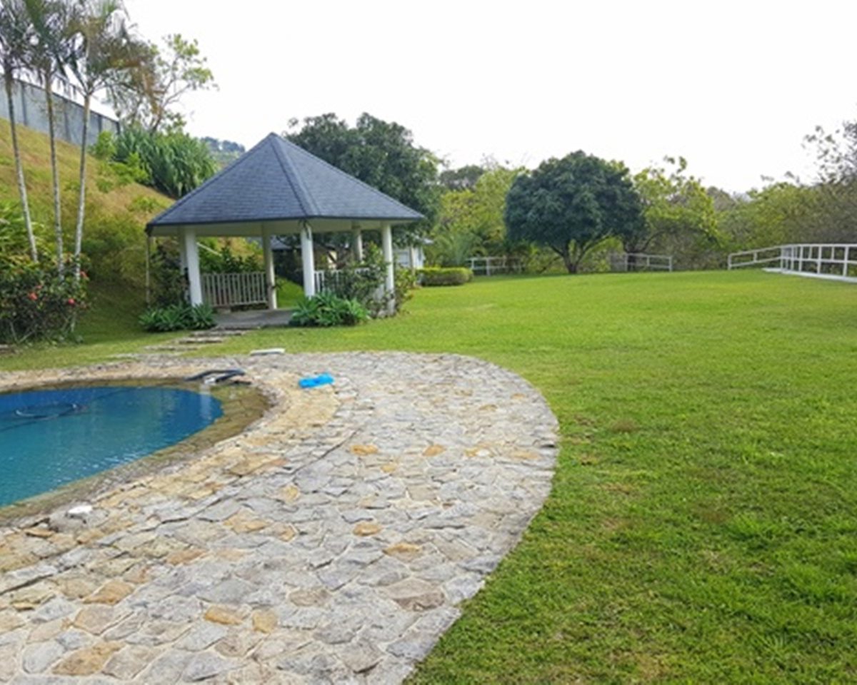 Es una casa espectacular en las montañas de Brasil de Mora, con vista 360° desde cualquier zona de la propiedad. Cuenta con 7,800m2 de terreno y 950m2 de construcción, distribuidos en 2 plantas. La casa, jardines y parqueos se encuentran ubicados en 5,000m2 totalmente planos. El resto de la propiedad, es un hermoso bosque donde se puede observar diferentes tipos de aves y árboles de gran tamaño. La residencia cuenta con una excelente distribución: En el primer piso tiene el dormitorio principal y 2 dormitorios secundarios; en el segundo piso cuenta con 2 dormitorios más, sala de TV y una sala de juego y/o área de bar. En total tiene 5 dormitorios cada uno con su baño a excepción de 2 que comparten baño. Una amplia sala comedor, cocina con antecomedor, baño de visitas, cuarto y baño de servicio, área de lavandería y garaje para dos carros con estacionamiento para 10 adicionales. Además cuenta con una gran terraza que da al jardín, que incluye una piscina, un dormitorio extra con baño y un rancho BBQ.
