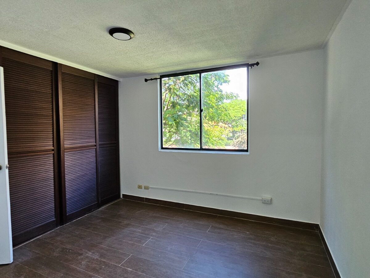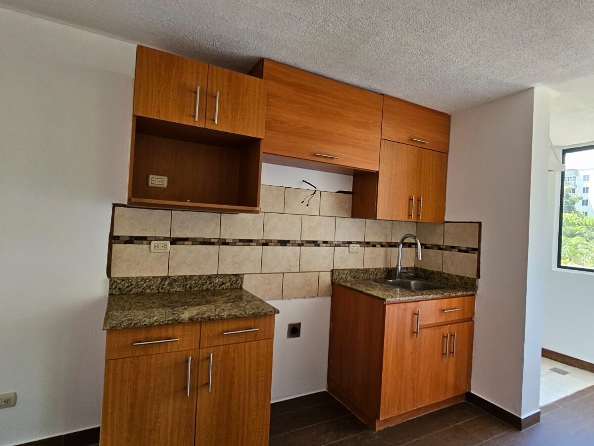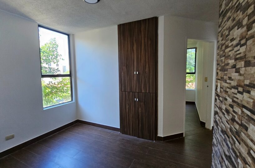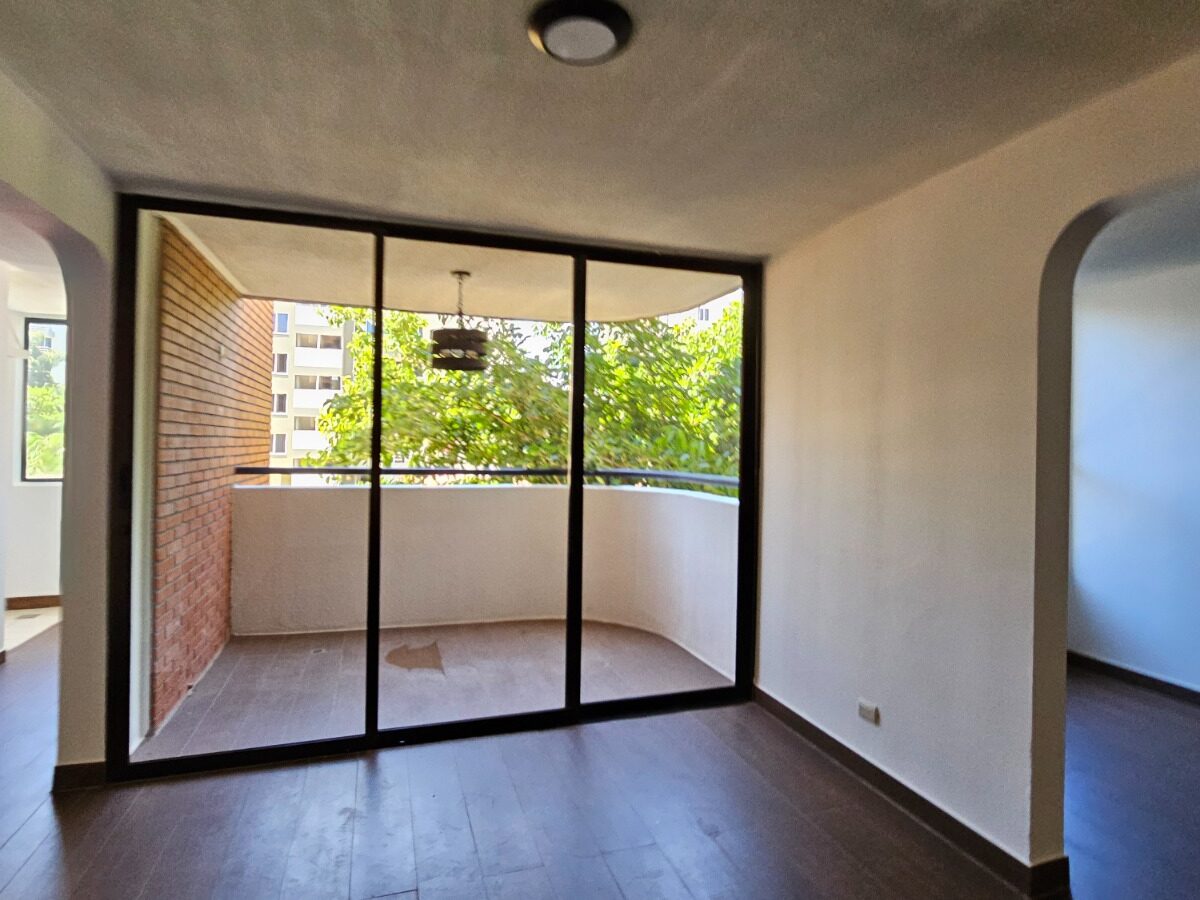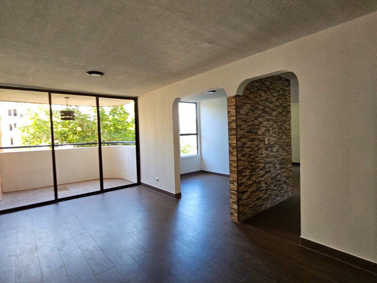 Este apartamento posee una cómoda área social de concepto abierto con salida a un balcón que le asegura una hermosa vista de los jardines, mueble con salida para T.V., cocina con muebles y desayunador, área de lavandería, un estacionamiento techado y bodega.  Además, ofrece dos confortables dormitorios y dos baños completos.