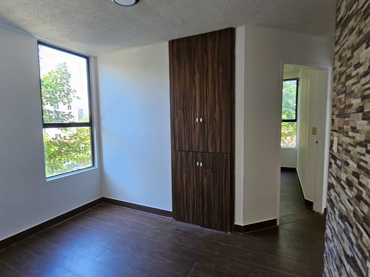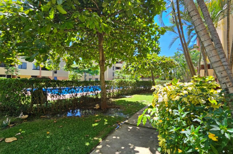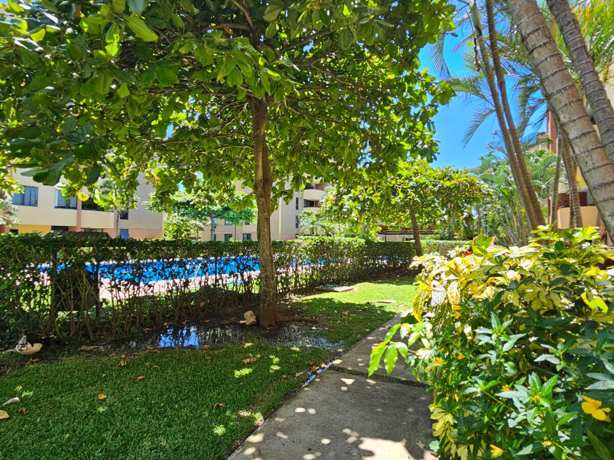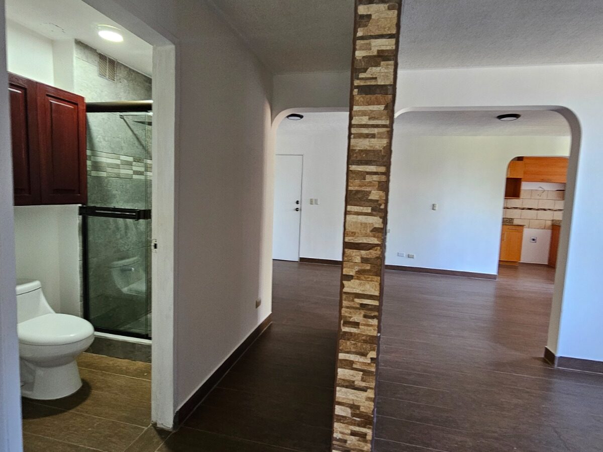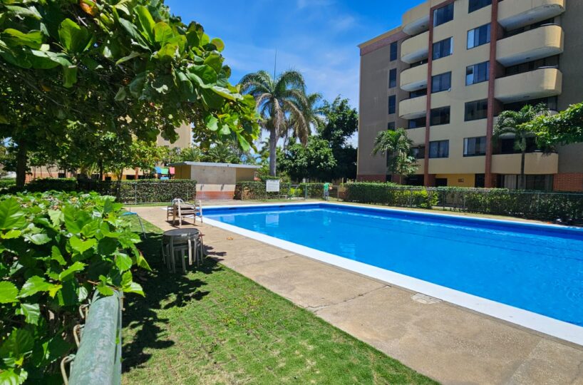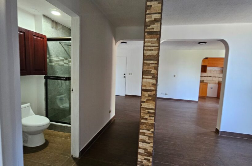 Este apartamento posee una cómoda área social de concepto abierto con salida a un balcón que le asegura una hermosa vista de los jardines, mueble con salida para T.V., cocina con muebles y desayunador, área de lavandería, un estacionamiento techado y bodega.  Además, ofrece dos confortables dormitorios y dos baños completos.