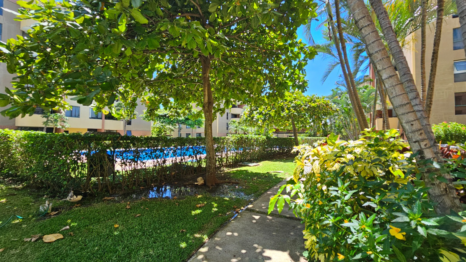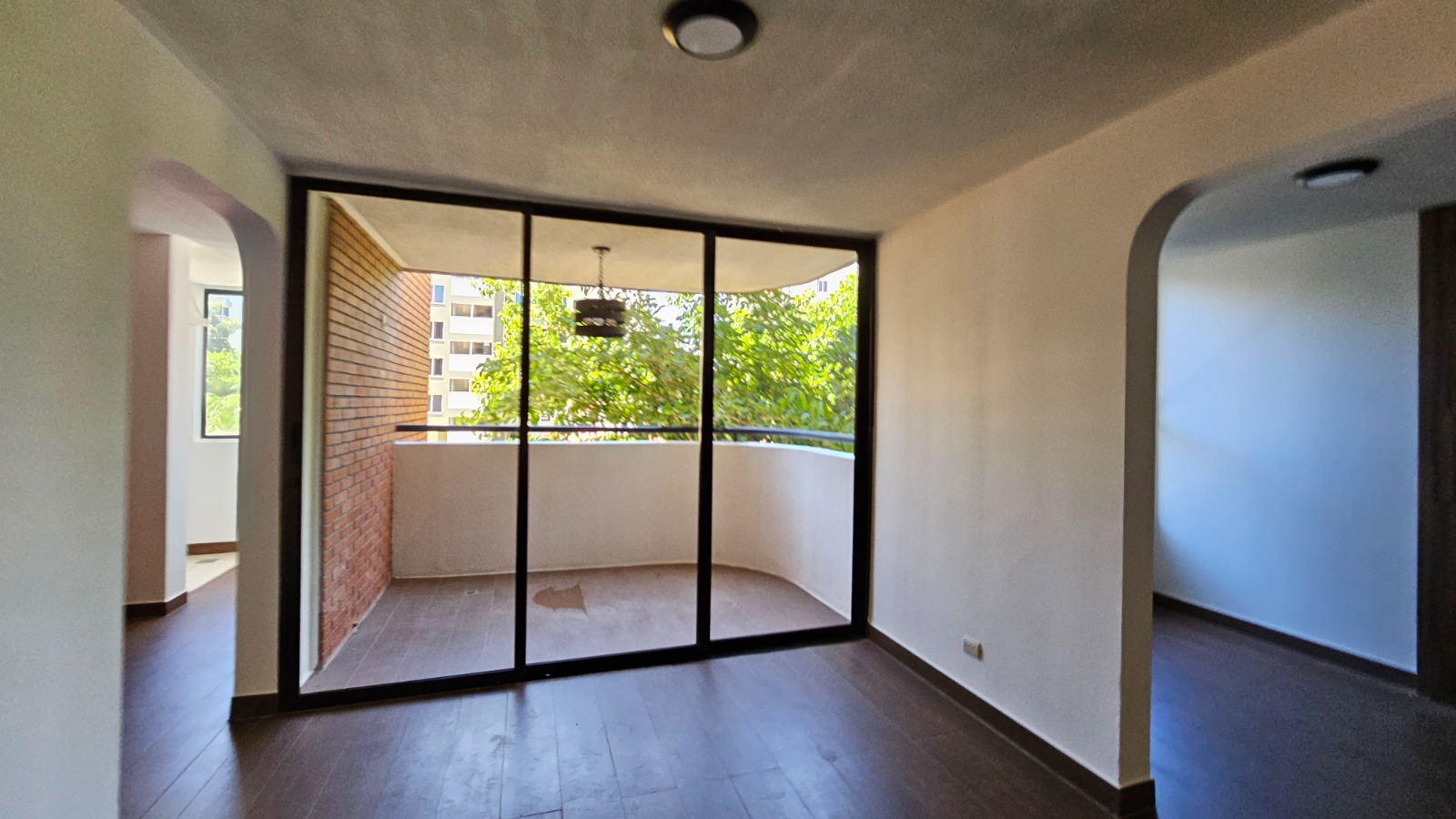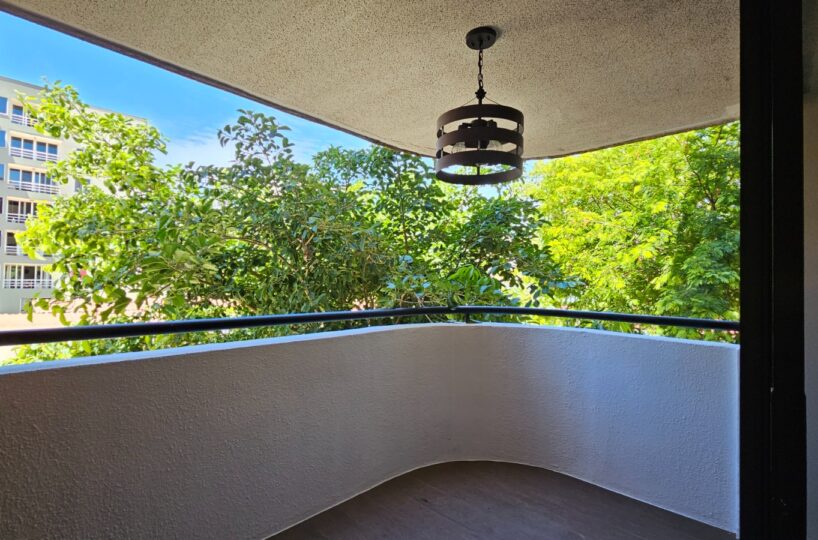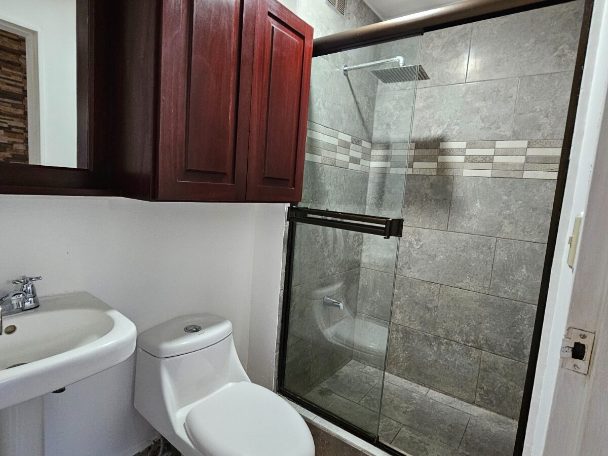 Este apartamento posee una cómoda área social de concepto abierto con salida a un balcón que le asegura una hermosa vista de los jardines, mueble con salida para T.V., cocina con muebles y desayunador, área de lavandería, un estacionamiento techado y bodega.  Además, ofrece dos confortables dormitorios y dos baños completos.