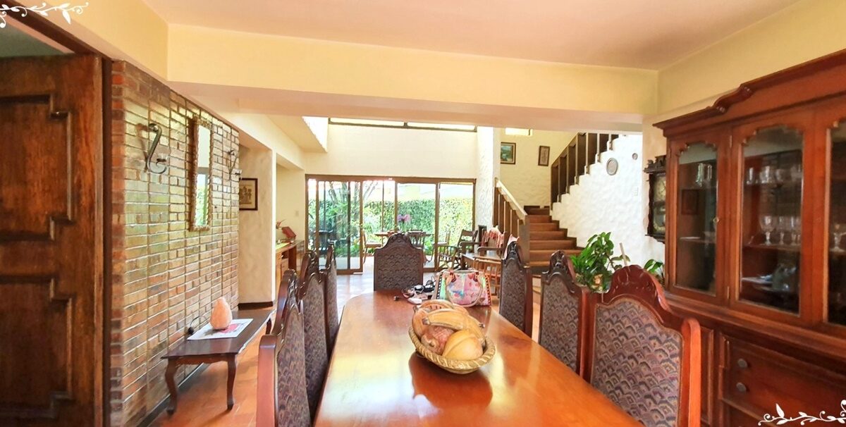 La casa cuenta con recibidor, sala y comedor que dan acceso a una hermosa terraza y un inmaculado jardín, cocina independiente con muebles y área para desayunar, lavandería y cuarto de servicio completo, así como garaje techado para dos carros y espacio para dos adicionales. Ofrece un área para relajarse o ver la TV, además de 4 amplios y frescos dormitorios, 5 baños y un solárium, entre otros.