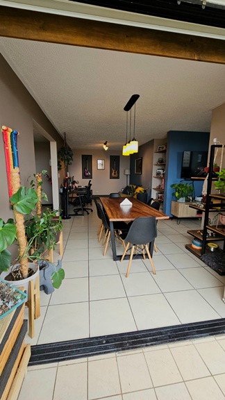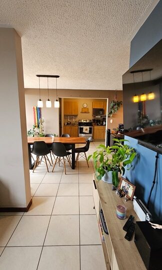 Un área de vestíbulo, 2 habitaciones más un área adicional que sirve como oficina o sala de tv, 2 baños completos, bodega, sala y comedor, cocina, cuarto de pilas y balcón. Incluye 2 parqueos cerca del acceso al edificio.