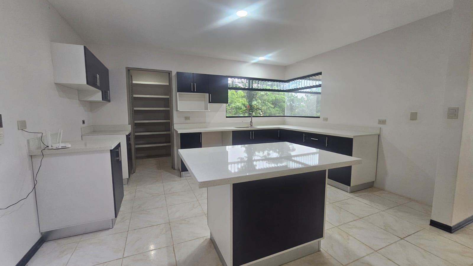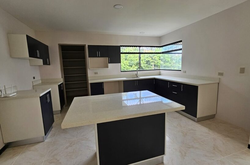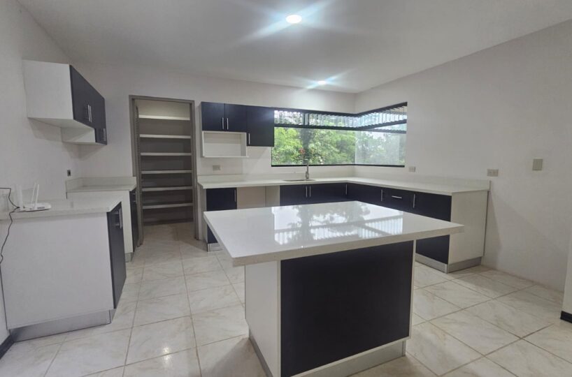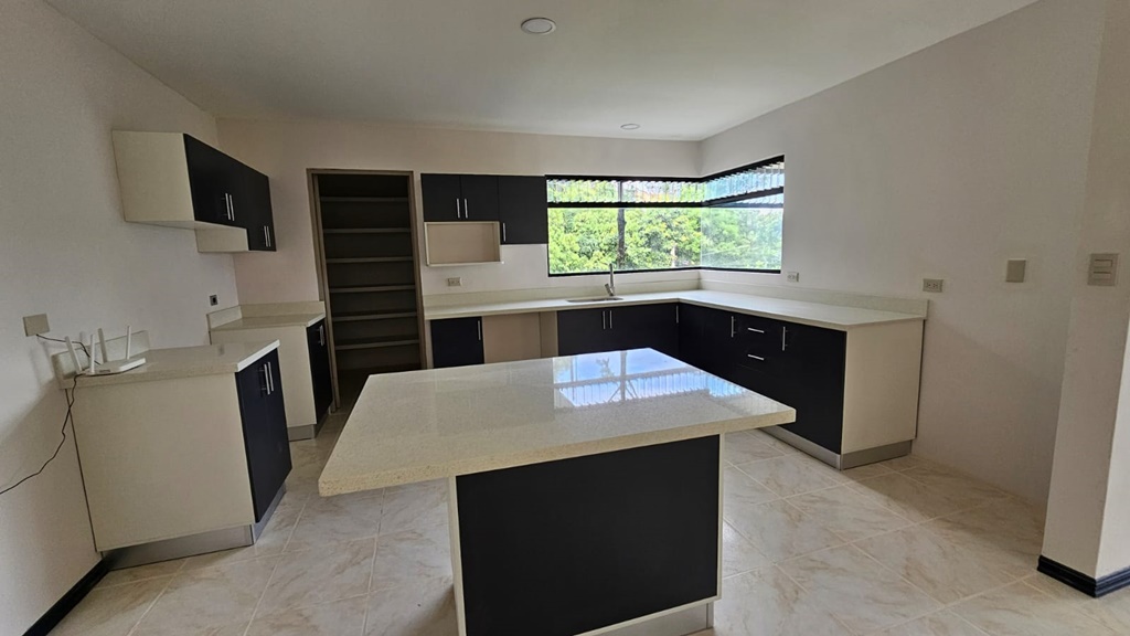 La cocina está totalmente remodelada con sobres de cuarzo y muebles de madera ademas de una espaciosa alacena.