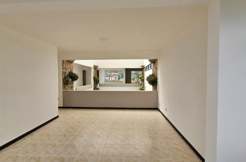 Adicionalmente posee un piso abajo en el que se encuentra el cuarto de servicio, una amplia bodega y un bello jardín. Ofrece ademas garaje para 4 carros pequeños o 2 muy grandes.