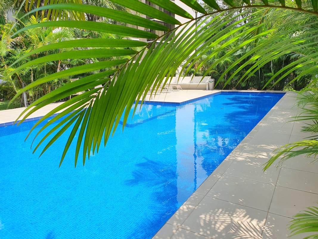 Este apartamento ofrece una amplia área social con cocina de concepto abierto y desayunador, balcón que le proporciona una preciosa vista así como baño para visitas. Además cuenta con 2 confortables dormitorios, 2 baños completos y sala de TV que puede acondicionarse como tercer dormitorio, cuarto de servicio completo y área de lavandería. Garaje bajo techo para un vehículo y uno extra abierto. PRECIO DE RENTA: $1.800(incluye línea blanca y cuota de mantenimiento). PRECIO DE VENTA: $299.000