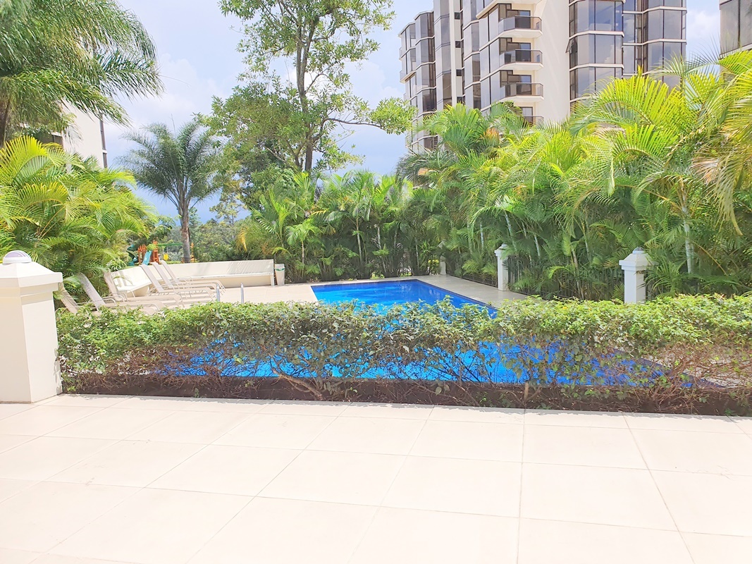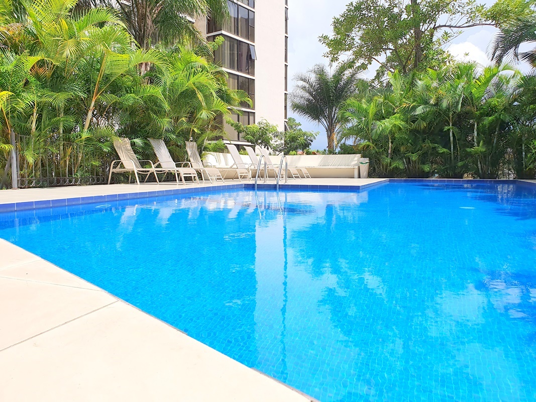Precioso apartamento de 217m2, ubicado en el quinto piso de un elegante complejo habitacional en Bello Horizonte de Escazú, en una zona tranquila y segura, cerca de todas las comodidades y de fácil acceso.  El condominio cuenta con seguridad 24/7, ascensores y con bellas áreas verdes comunes con piscina, Casa Club, gimnasio y parqueo para visitas, entre otros.