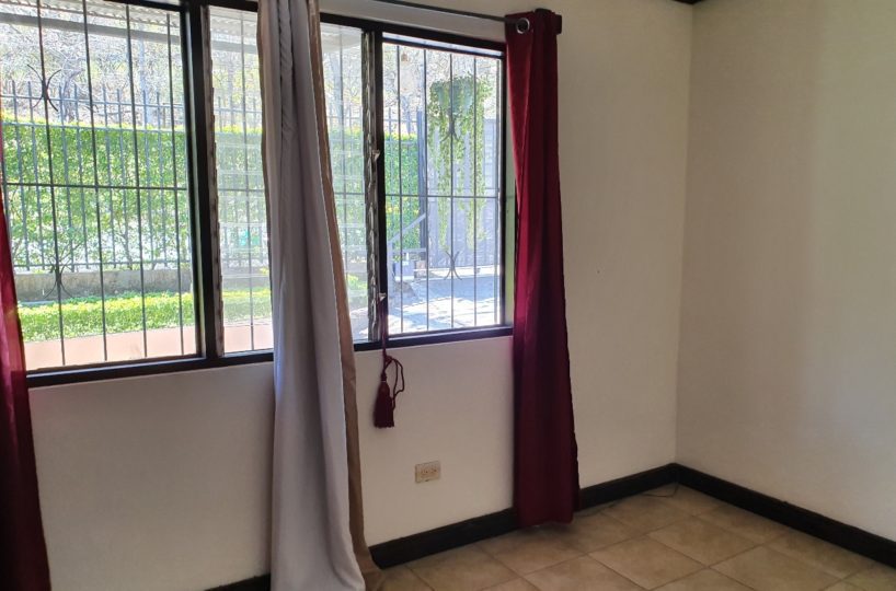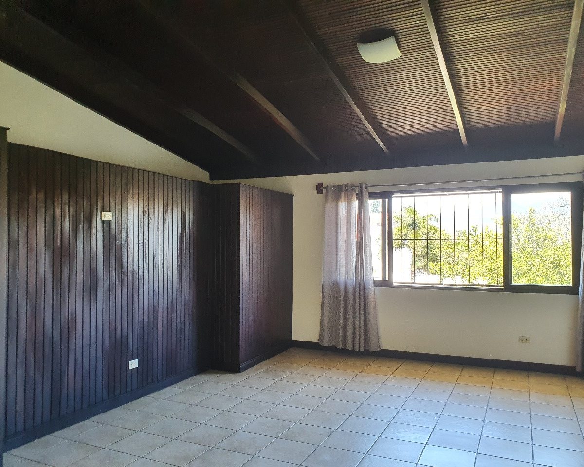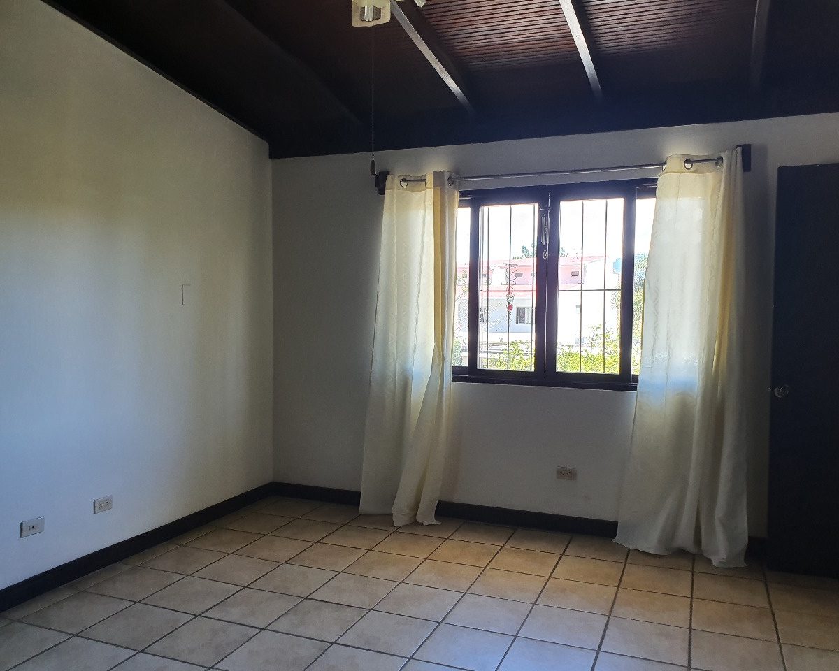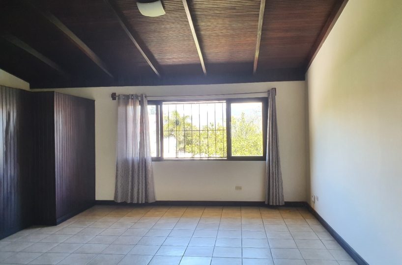 For rent this beautiful 120m2 two levels house, located in Guachipelin, Escazu, close to everything, in a quiet and safe area, surrounded by beautiful gardens and with an amazing view. The house offers the ideal size and to make it even more comfortable, it has plenty of light and natural ventilation. It has a large dining room with a wide window that provides a beautiful view, guest bathroom, breakfast area and an open-concept kitchen with furniture. It also offers laundry area, open parking for 3 cars and a beautiful garden. It has 3 bedrooms each with a full bathroom, two on the first floor and one going down the stairs going down the stairs since the house is built on a slope