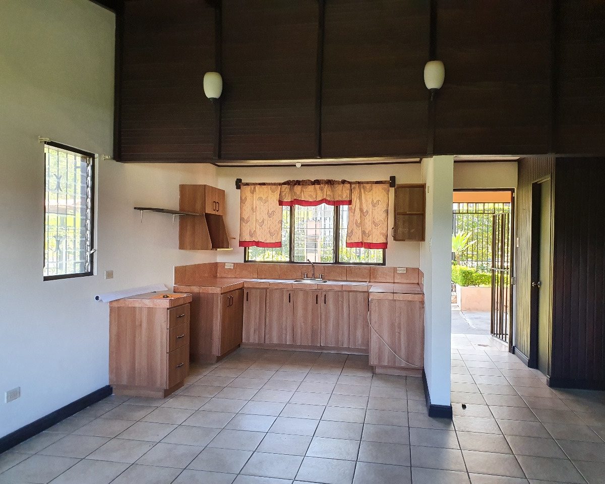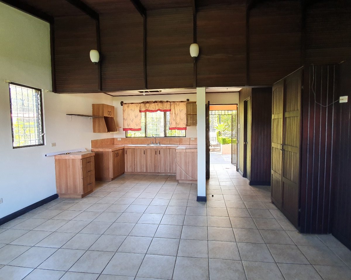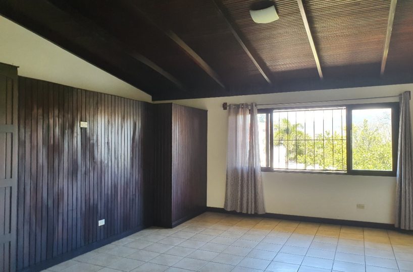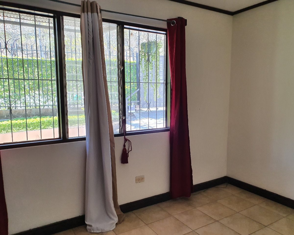 For rent this beautiful 120m2 two levels house, located in Guachipelin, Escazu, close to everything, in a quiet and safe area, surrounded by beautiful gardens and with an amazing view. The house offers the ideal size and to make it even more comfortable, it has plenty of light and natural ventilation. It has a large dining room with a wide window that provides a beautiful view, guest bathroom, breakfast area and an open-concept kitchen with furniture. It also offers laundry area, open parking for 3 cars and a beautiful garden. It has 3 bedrooms each with a full bathroom, two on the first floor and one going down the stairs going down the stairs since the house is built on a slope