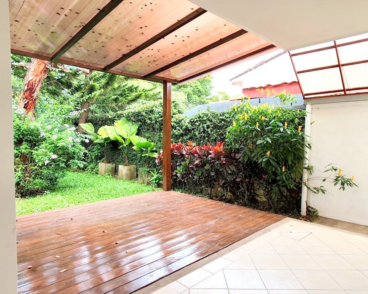 Beautiful house for sale located within a 4-unit housing complex in Jaboncillos, Escazú, a quiet and safe residential area near bus stops, shopping centers, schools, supermarkets, health services, among others.The house has a construction area of 188m2 on one floor, optimally distributed for greater use of space. It has a large social area and kitchen with cabinets and a large terrace that gives access to an immaculate garden. It also has a laundry area, maid´s quarters and 2 car garage. Additionally, it offers 3 comfortable bedrooms and 2 full bathrooms. This beautiful house has been recently remodeled with high quality materials and finishes, and due to its design it presents fabulous natural lighting and ventilation. SALE PRICE: $220.000