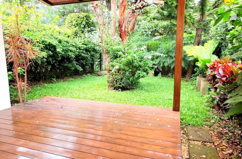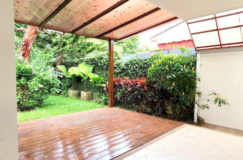 Venta de hermosa casa ubicada dentro de un complejo habitacional de 4 unidades en Jaboncillos de Escazú, un residencial tranquilo y seguro cerca de paradas de autobús, centros comerciales, centros educativos, supermercados, servicios de salud, entre otros. La casa posee un área de construcción de 188m2 en una planta, óptimamente distribuidos para mayor aprovechamiento de espacios. Cuenta con una amplia área social y cocina con gabinetes y una gran terraza que da acceso a un inmaculado jardín. Tiene además área de lavandería, cuarto y baño de servicio, garaje bajo techo para 2 automóviles. Adicionalmente, cuenta con 3 habitaciones muy cómodas y 2 baños completos. Esta hermosa casa está recién remodelada con materiales y acabados de gran calidad, y por su diseño presenta una fabulosa iluminación natural, y ventilación. PRECIO DE VENTA: $220.000