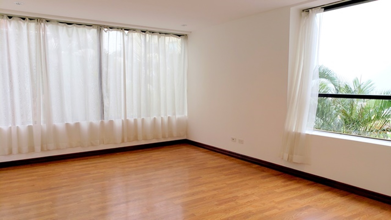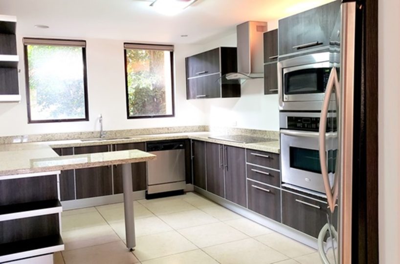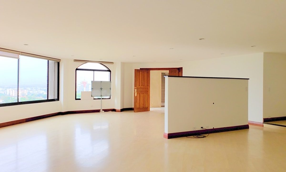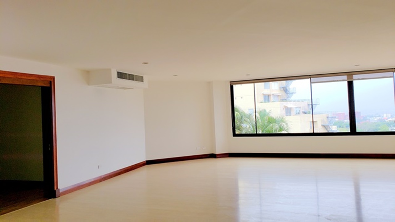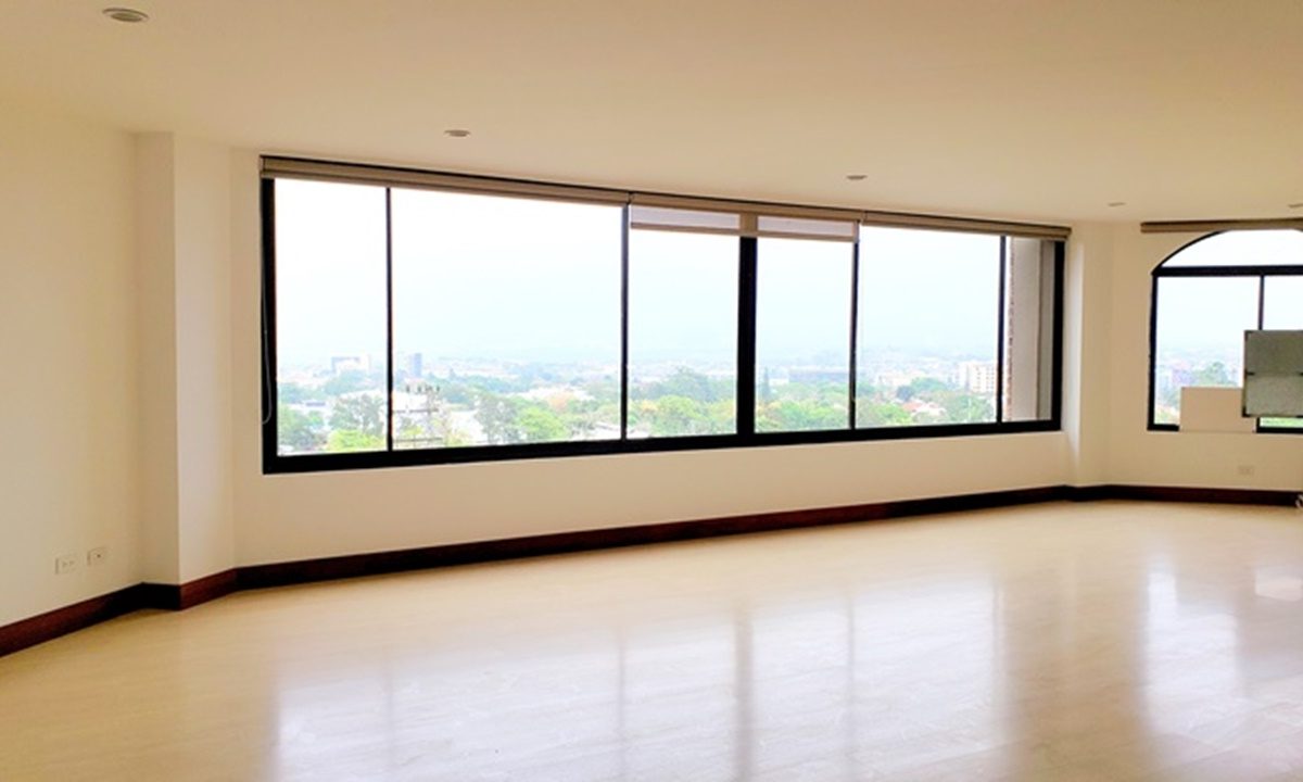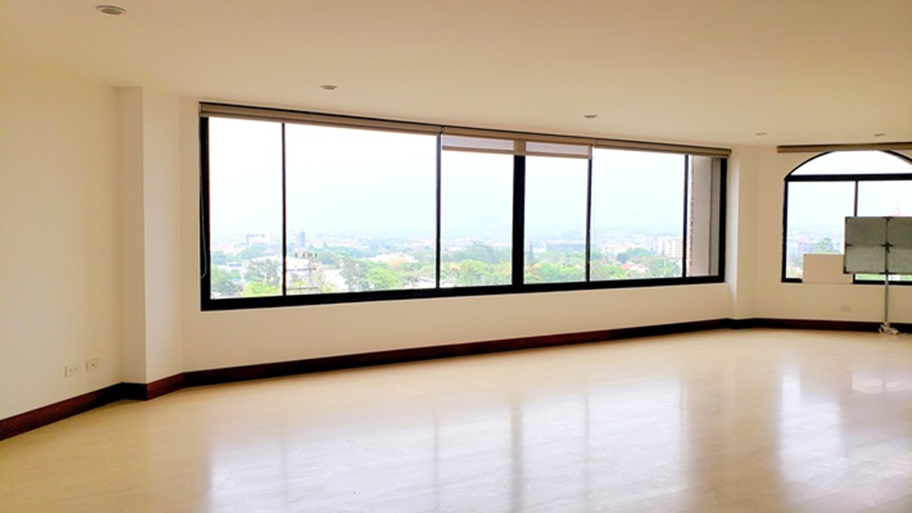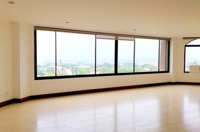 Exclusive 320m2 apartment in a residential building located near La Paco in San Rafael de Escazu. It features a large dining room with an impressive view, a kitchen with luxury appliances, a guest bathroom, T.V. room and office, laundry area and maids quarters. It also offers 2 comfortable and cozy bedrooms, both with walk in closet and 2 bathrooms. There is the possibility of building a third bedroom. It has indoor parking for two cars and a cellar. The condominium offers proximity to all the amenities and services, 24/7 security, a ranch with a BBQ area, swimming pool and playground for children, as well as beautiful common green areas.