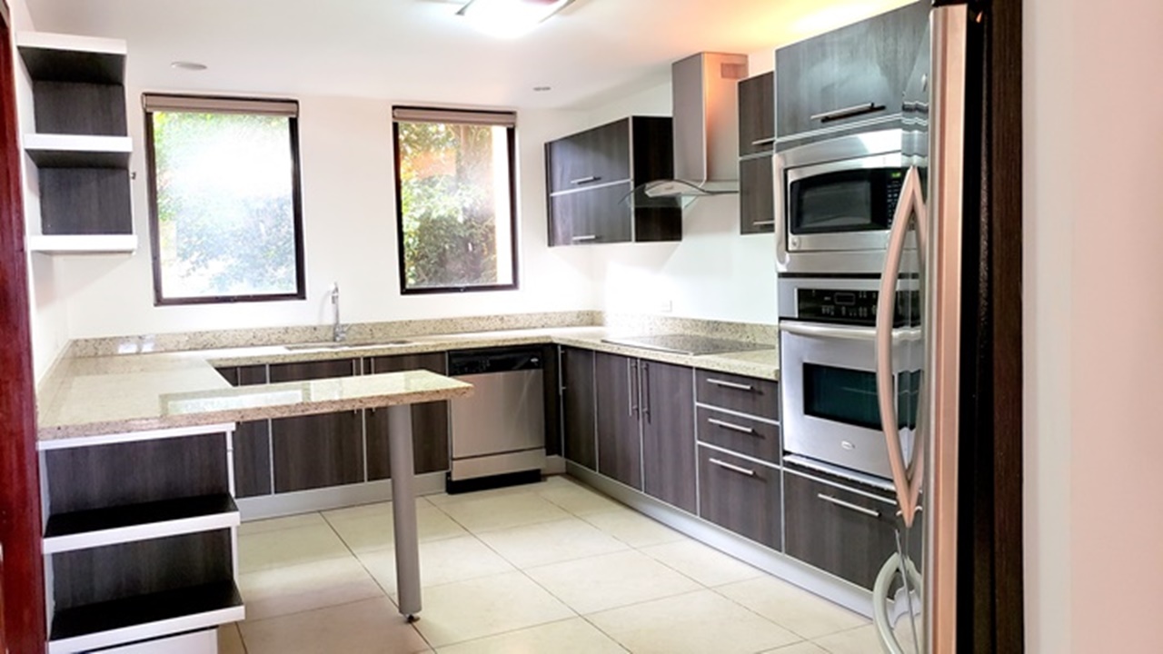 Exclusivo apartamento de 320m2 en edificio habitacional ubicado en las cercanías de La Paco en San Rafael de Escazú. Consta de amplia sala comedor con una vista impresionante, cocina con línea blanca de lujo, baño de visitas, sala de T.V. y oficina, área de lavandería y cuarto de servicio con baño completo. Además consta de 2 cómodos y acogedores dormitorios, ambos con walk in closet y 2 baños. Existe la posibilidad de construir un tercer dormitorio. Posee estacionamiento bajo techo para dos automóviles y bodega. El condominio ofrece cercanía a todas las amenidades y servicios, seguridad 24/7, rancho con área de BBQ, piscina y área de juegos para niños, así como bellísimas áreas verdes comunes.