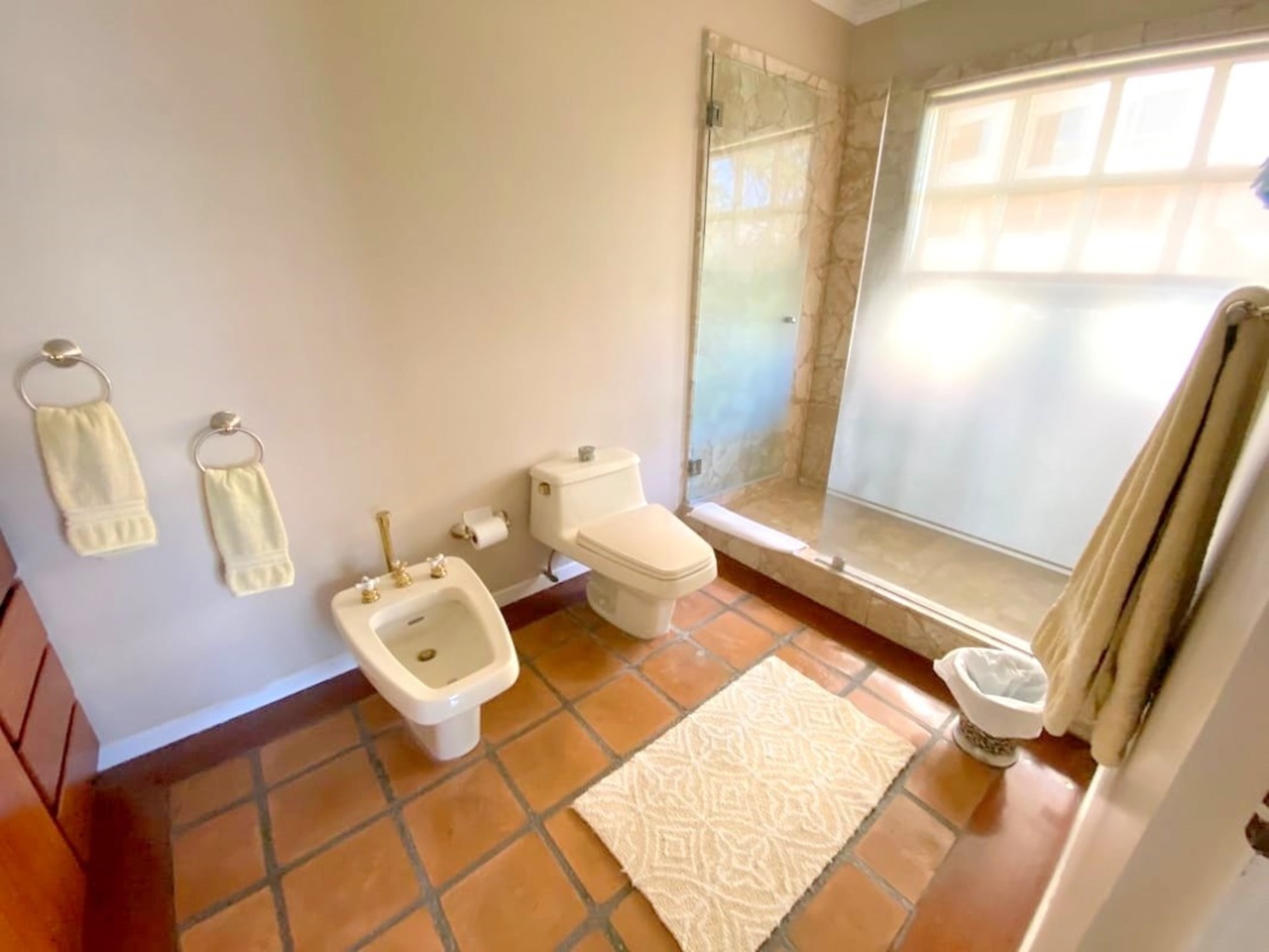 On the second floor it offers 4 spacious and comfortable rooms, all with walk in closet and private bathrooms that have bathtubs and showers and Palladian tops in fine cabinets. The master bathroom has access to a balcony overlooking the garden.