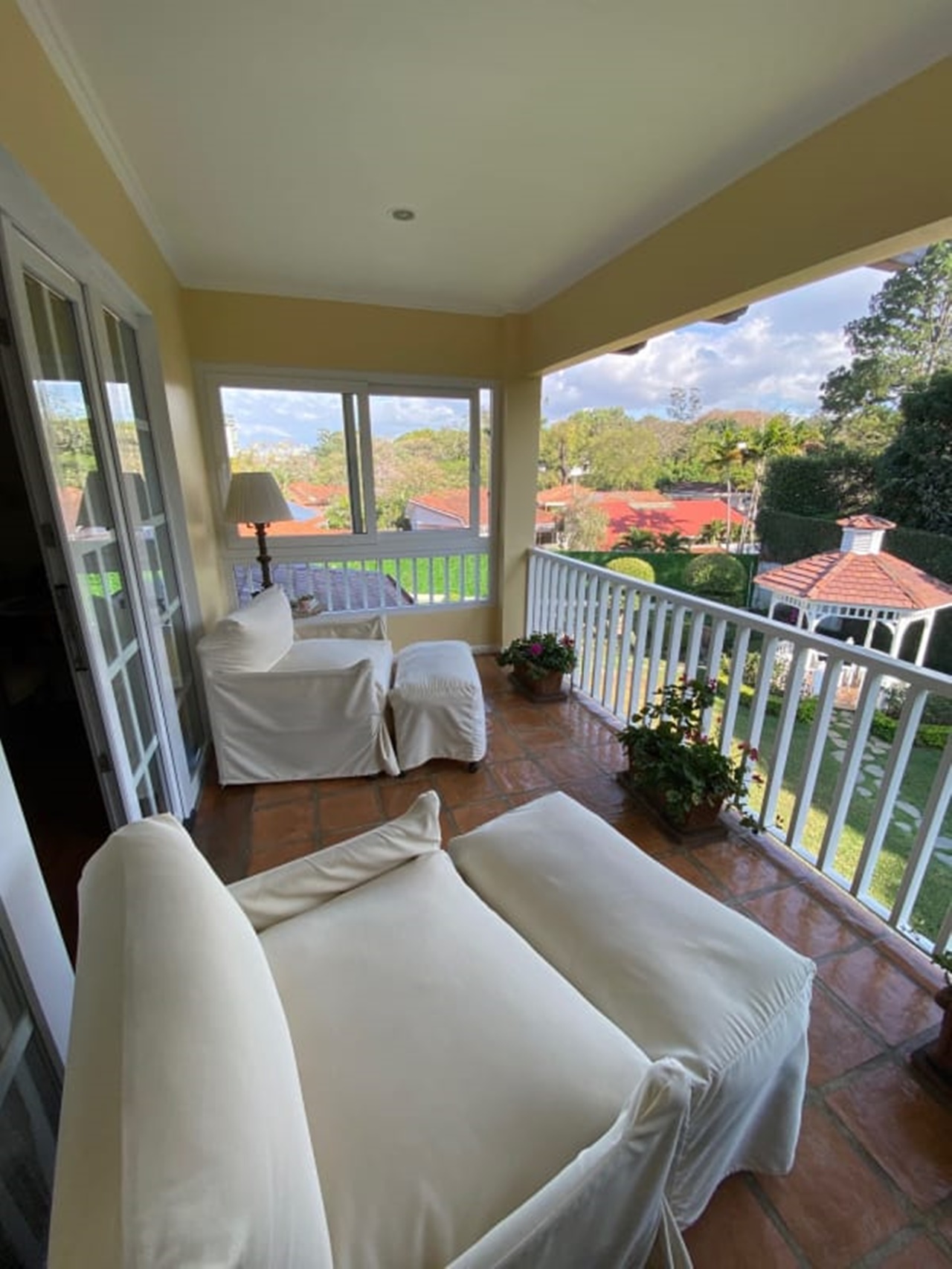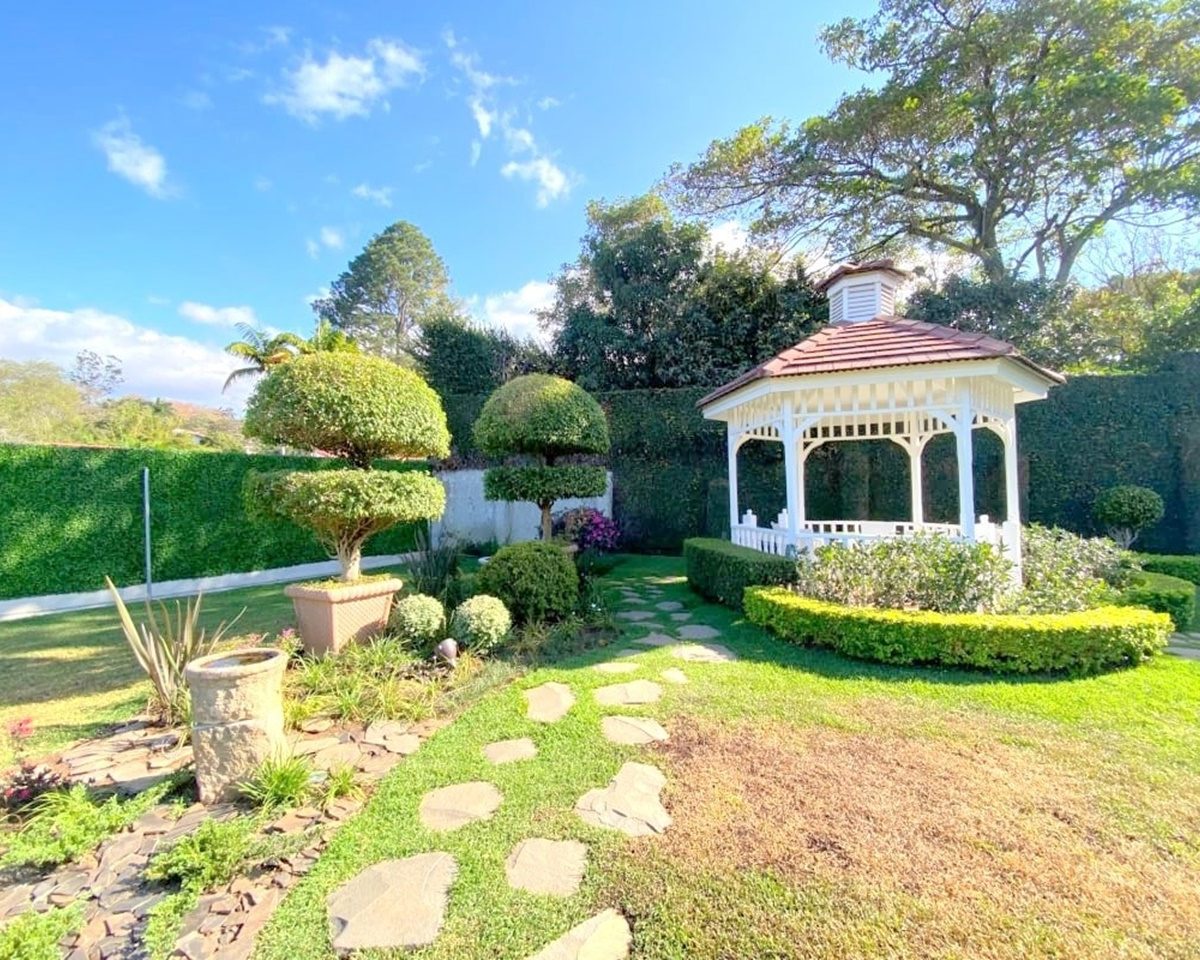La propiedad posee además en áreas abiertas un “gazeebo” con hermoso acabado que sirve para relajarse en medio del impecable jardín, casita de muñecas, perrera, amplia bodega de almacenamiento, tanque de retención de agua con bomba, sistema de riego y fosa séptica, cámaras de vigilancia, entre otros.