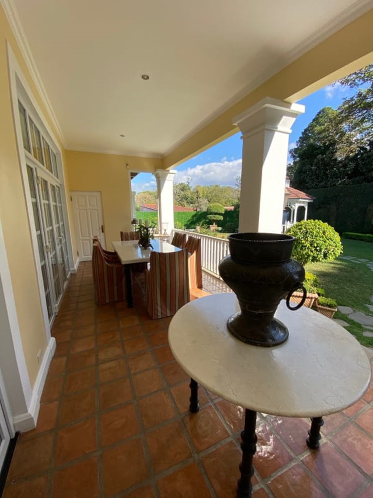 This beautiful 474m2 house on two floors is located within a dream property of 4,179m2, one of a kind, which offers beautiful gardens and a unique, fresh environment with lots of natural light. The house was completed in 1993 to the highest standards of construction and fine finishes. Among its attractions is a large terrace that is connected to the elegant living and dining areas and the spacious kitchen, making it a truly functional integrated outdoor living space. The kitchen has an island, custom wood cabinets with granite counter tops, and plenty of storage space and a breakfast area.