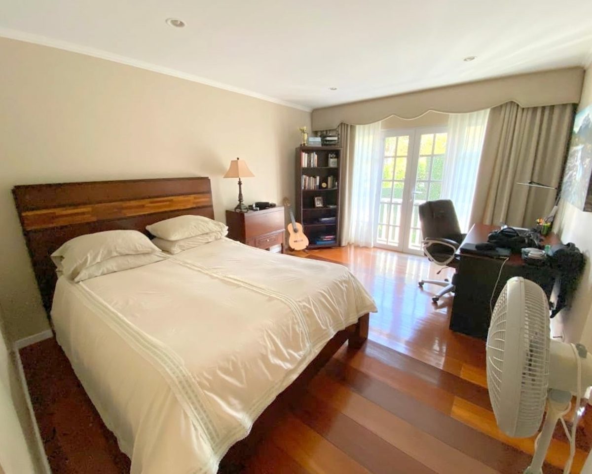 En total tiene 5 dormitorios y 4.5 baños más cuarto de servicio completo. En el primer piso se encuentran una amplia área social con recibidor y medio baño para visitas, terraza, jardín, cocina, oficina con acceso a la terraza, 1 habitación con walk in closet y baño completo, área de lavandería, cuarto de servicio con baño, amplia bodega, garaje bajo techo para 2 vehículos y espacio de estacionamiento para 10 o más adicionales. En segunda planta ofrece 4 amplias y cómodas habitaciones, todas con walk in closet y baños privados que cuentan con bañeras y duchas con sobres y en paladiana y gabinetes finos. El baño máster tiene salida a un balcón con vista al jardín.