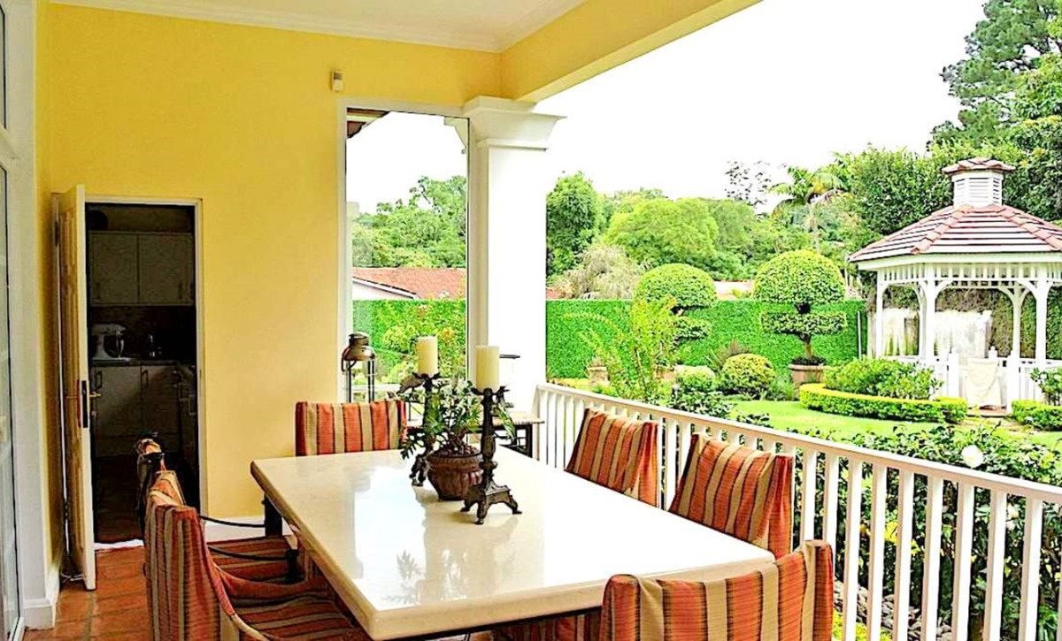 Esta hermosa casa de 474m2 en dos plantas, se ubica dentro de una propiedad de ensueño de 4.179m2, única en su tipo, que ofrece hermosos jardines y un ambiente inigualable, fresco y con mucha luz natural. La casa fue terminada en el año 1993 con los más altos estándares de construcción y finos acabados. Dentro de sus atracciones se encuentra una gran terraza que está conectada a las áreas elegantes de sala y comedor y a la amplia cocina, lo que la convierte en un espacio de vida al aire libre integrado, verdaderamente funcional. La cocina tiene una isla, gabinetes de madera personalizados con encimeras de granito y suficiente espacio de almacenamiento y antecomedor o área para desayunar.