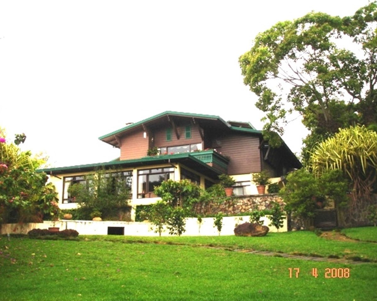 Esta impresionante casa de 900m2 en dos plantas, se ubica dentro de una propiedad de 2.805m2, frente al Costa Rica Country Club en Escazú, con frente a tres calles públicas. Ofrece dentro de sus mayores atractivos, impecables jardines con árboles adultos y un ambiente inigualable, fresco, y con mucha luz natural, así como su construcción con los más altos estándares y finos acabados como maderas finas en toda la casa. La casa ofrece, entre otros: