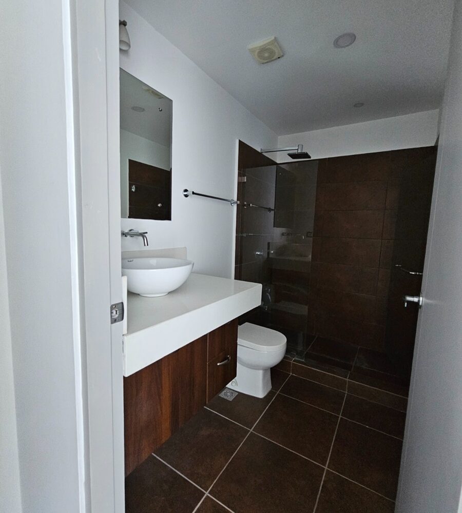 • 3 baños, uno completo con ducha y dos medios baños