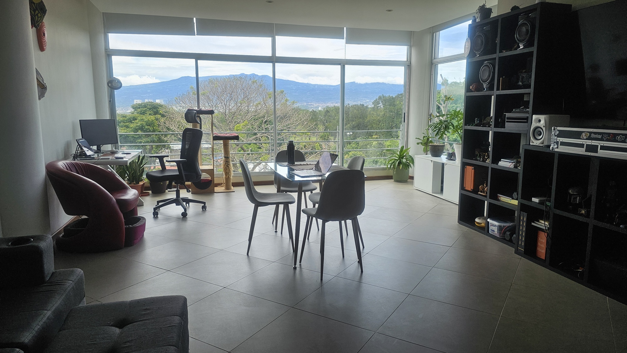 Tiene una hermosa vista . Es muy claro. Con grandes ventanales.