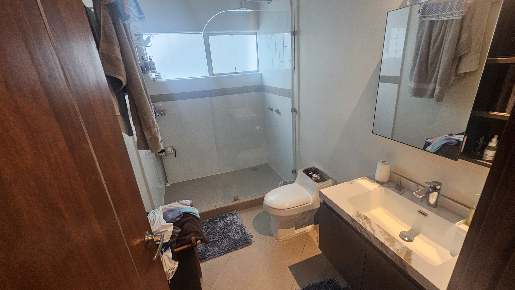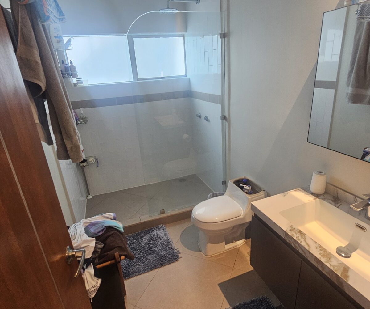 El master tiene su baño privado y walking closet . Los otros 2 dormitorios comparten un amplio baño y hay otro adicional para el servicio.
