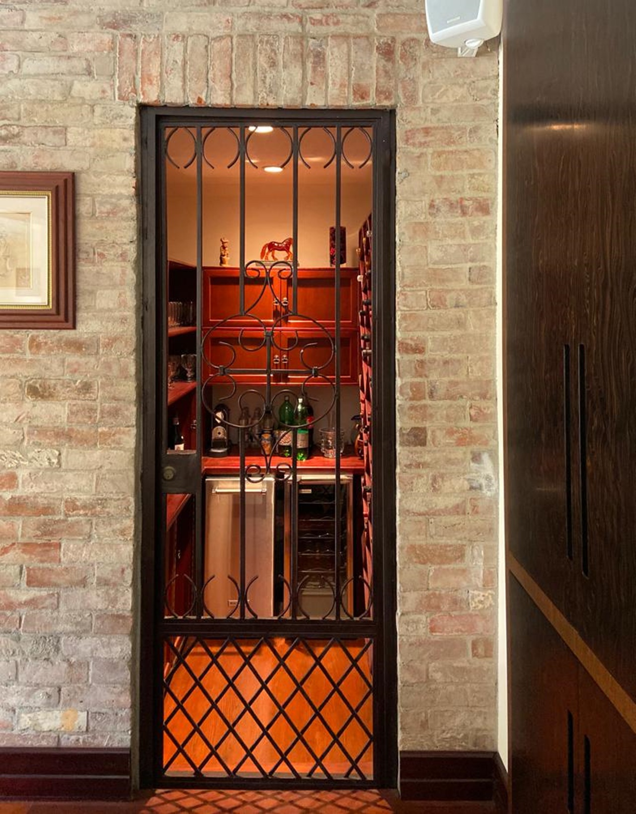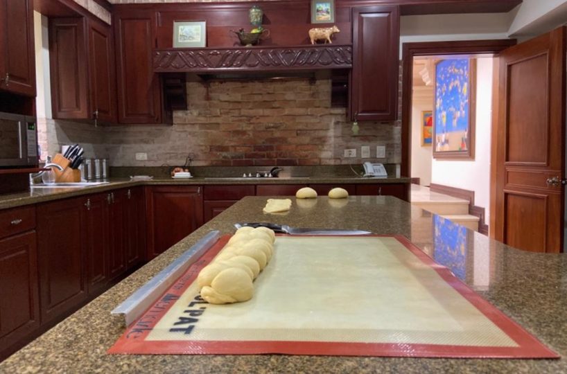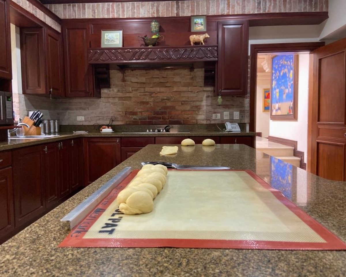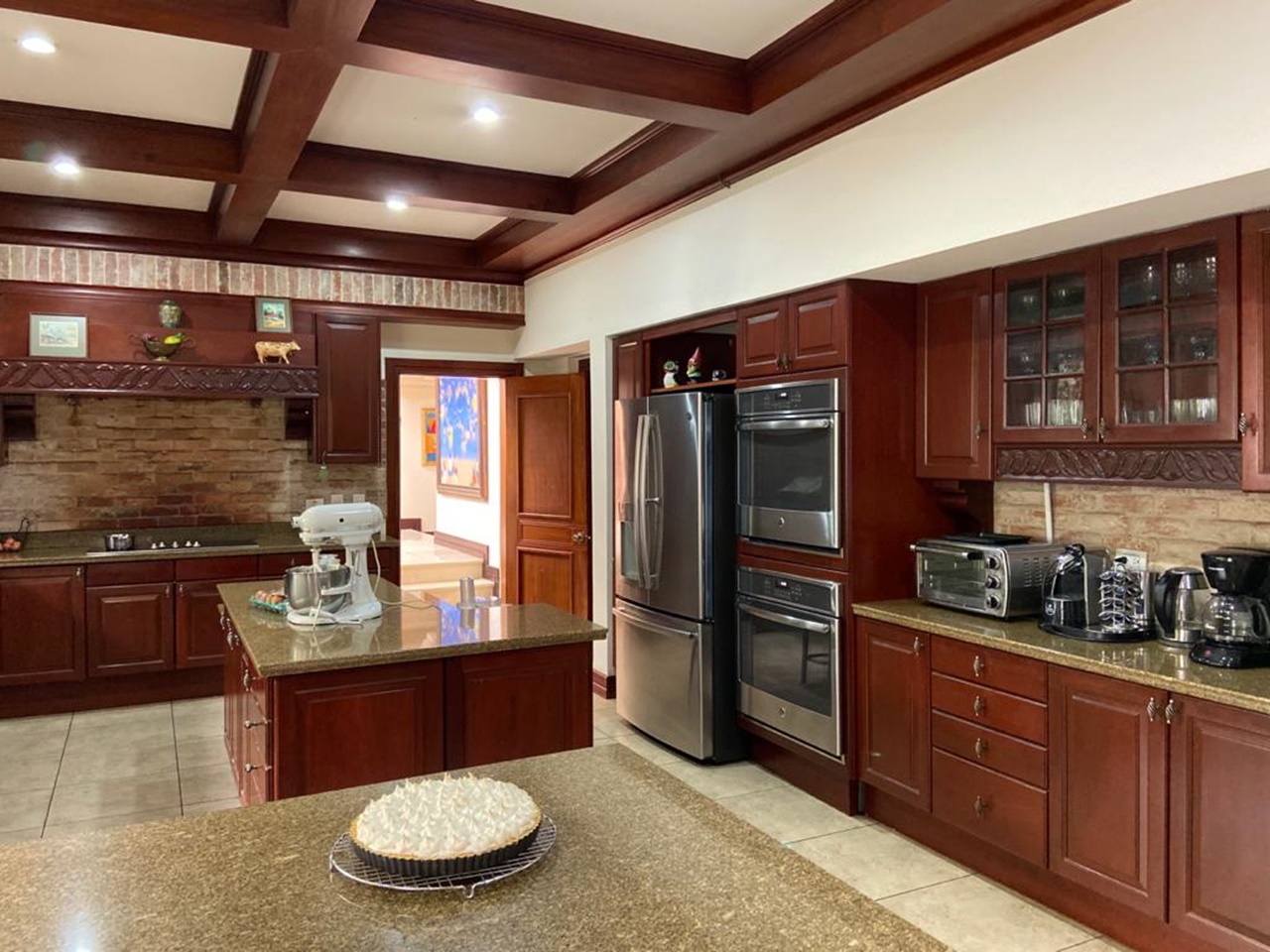 La cocina es independiente y muy amplia, clara y fresca y posee muebles finos de madera con sobres de granito, así como una isla, cava de vinos y mucho espacio para almacenamiento. Además cuenta con área de lavandería y dormitorio de servicio con dos baños. El garaje puede albergar hasta 6 automóviles.