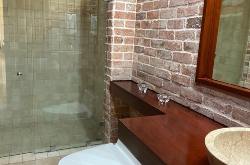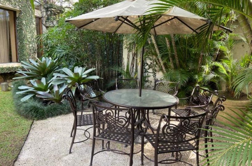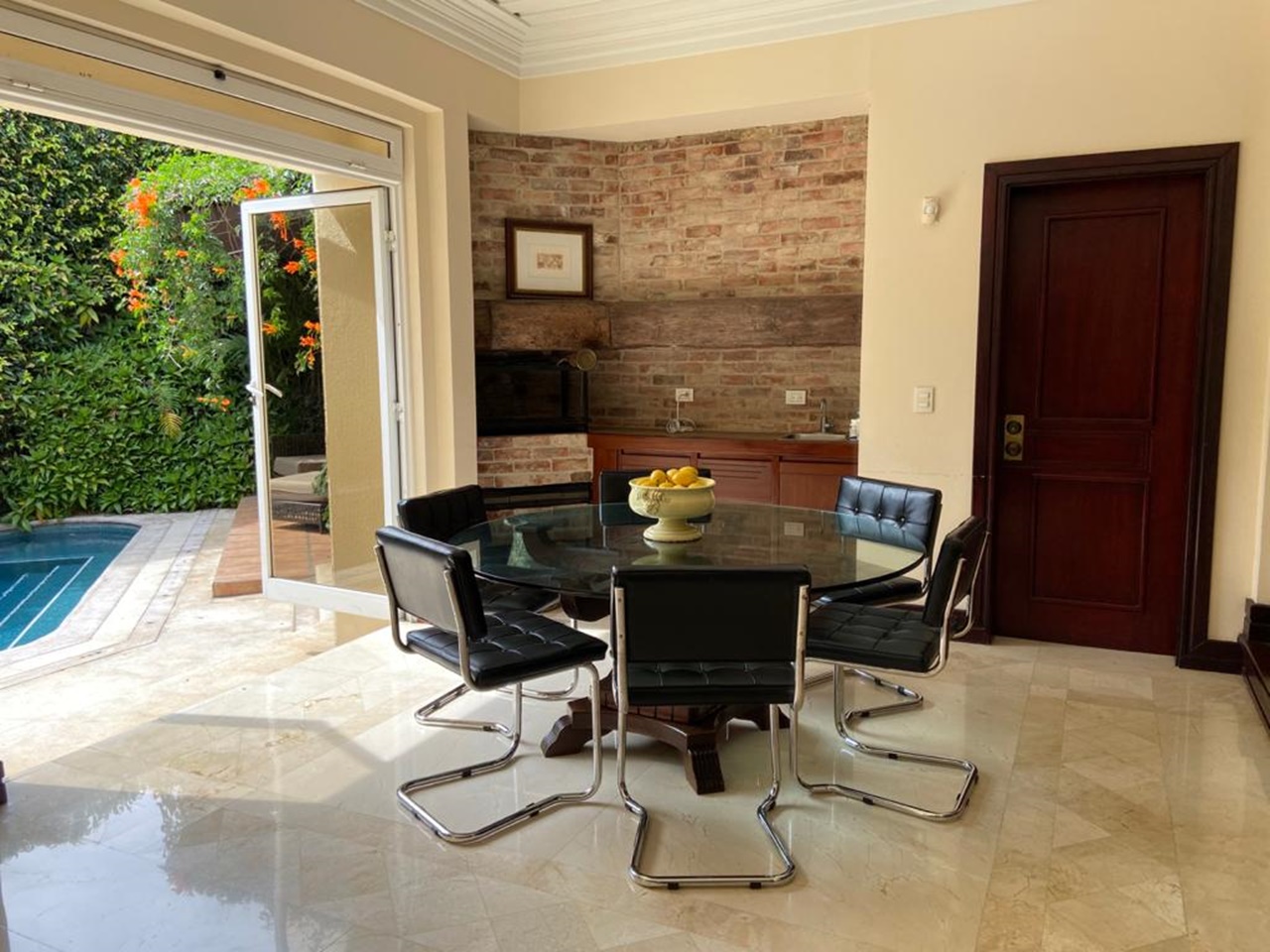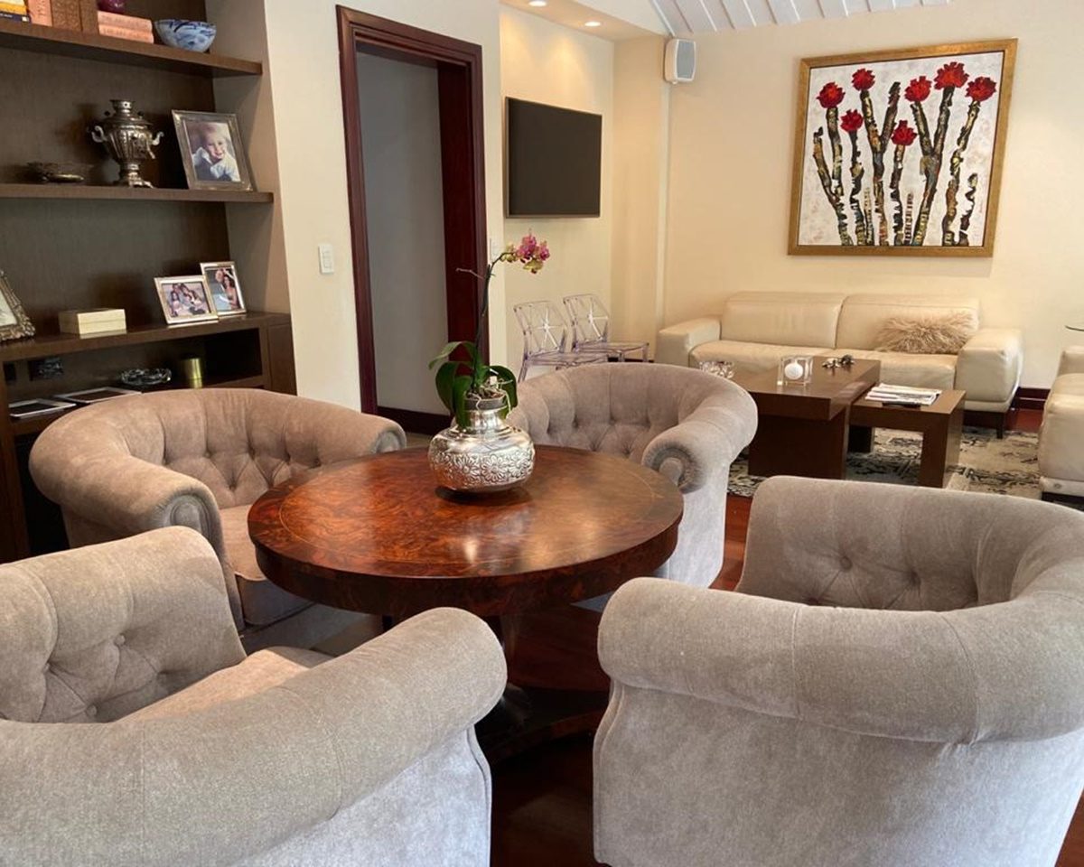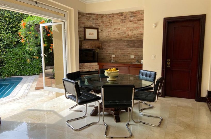 It has a cozy and elegant lobby, with fine wooden doors, high ceilings and windows that let in a lot of light and that gives access to the ample social area with doors to the terrace and pool area. It also offers a breakfast room with a beautiful view of the garden.