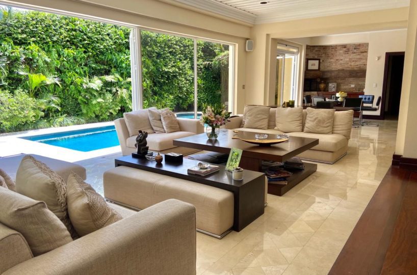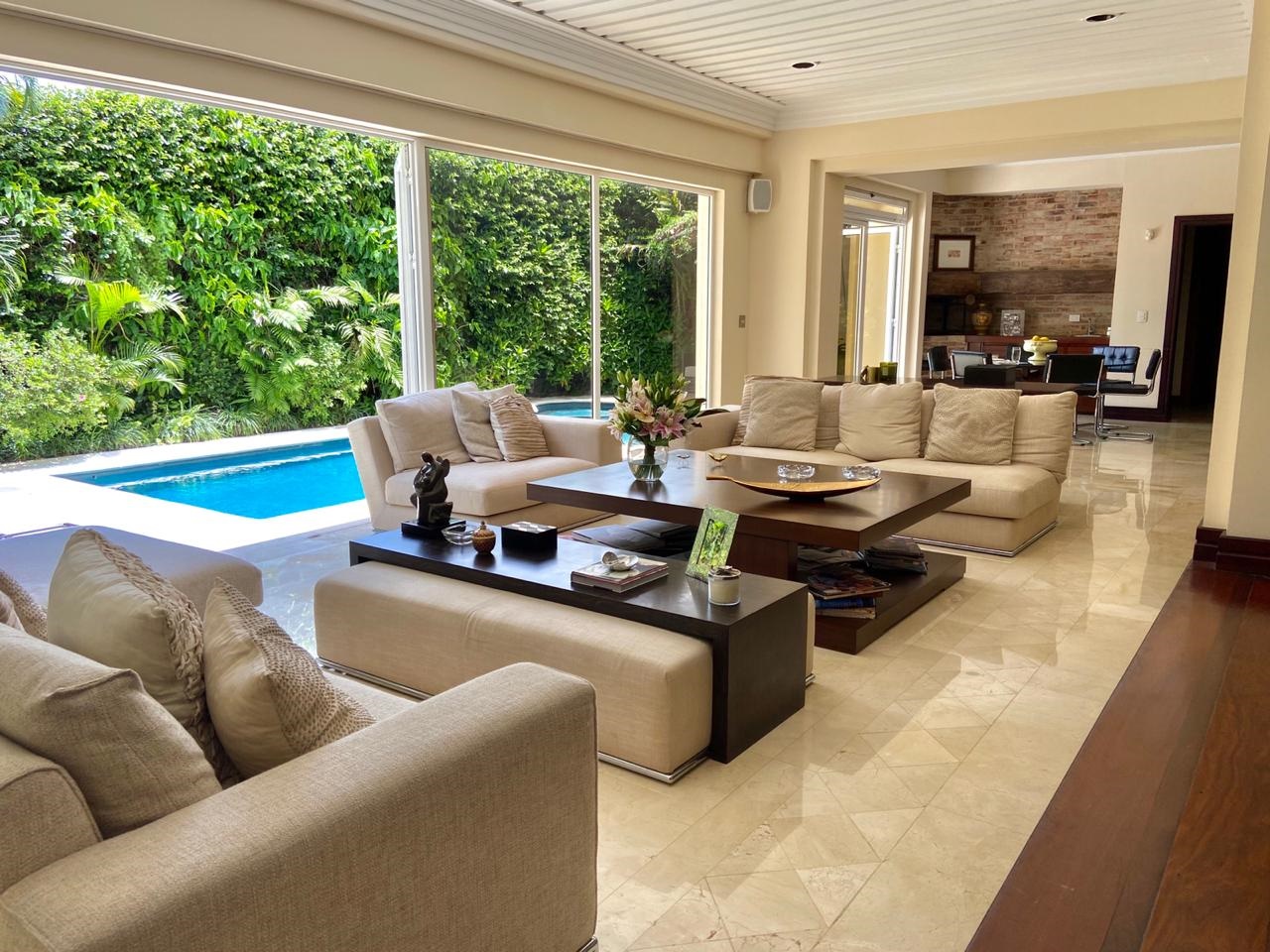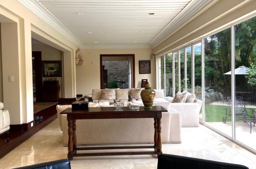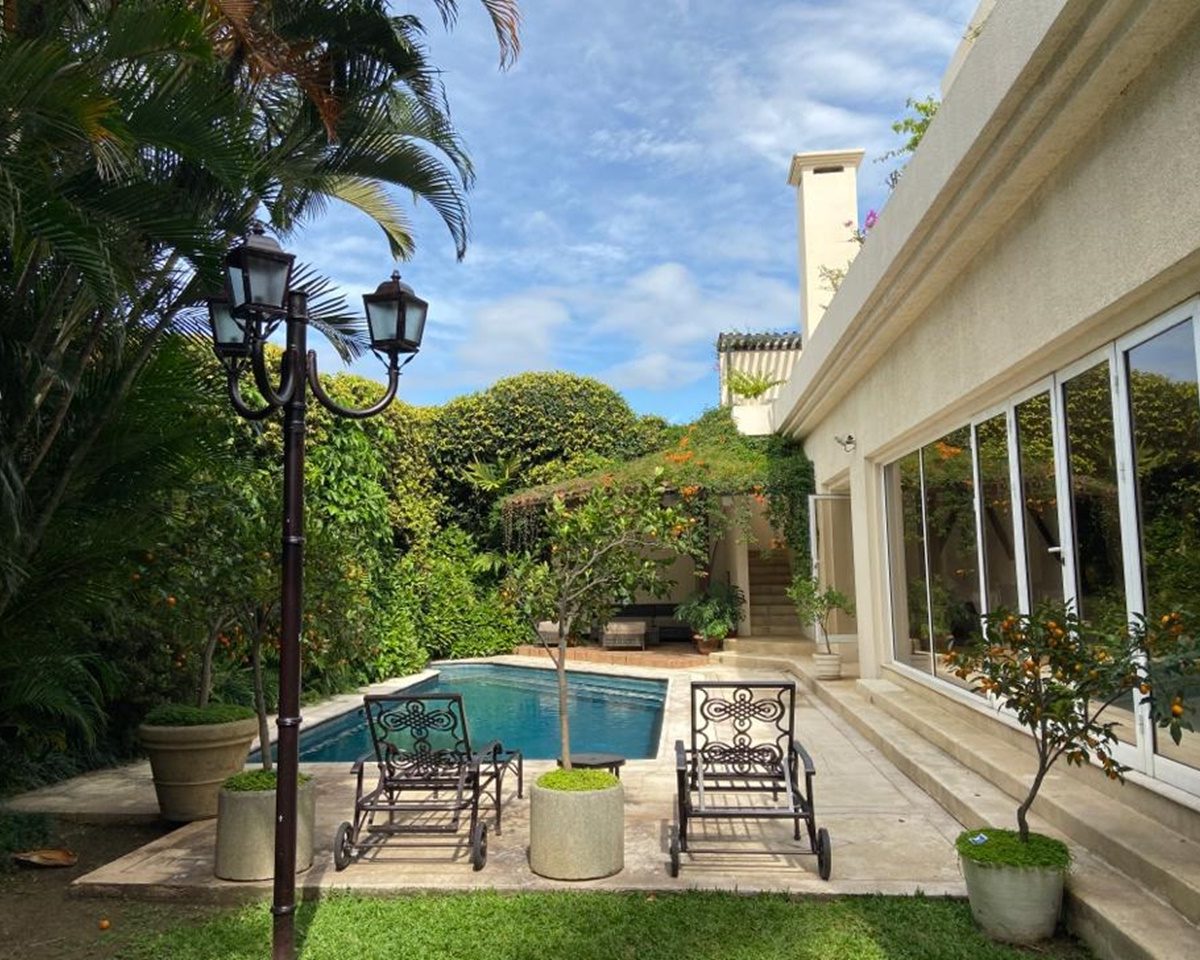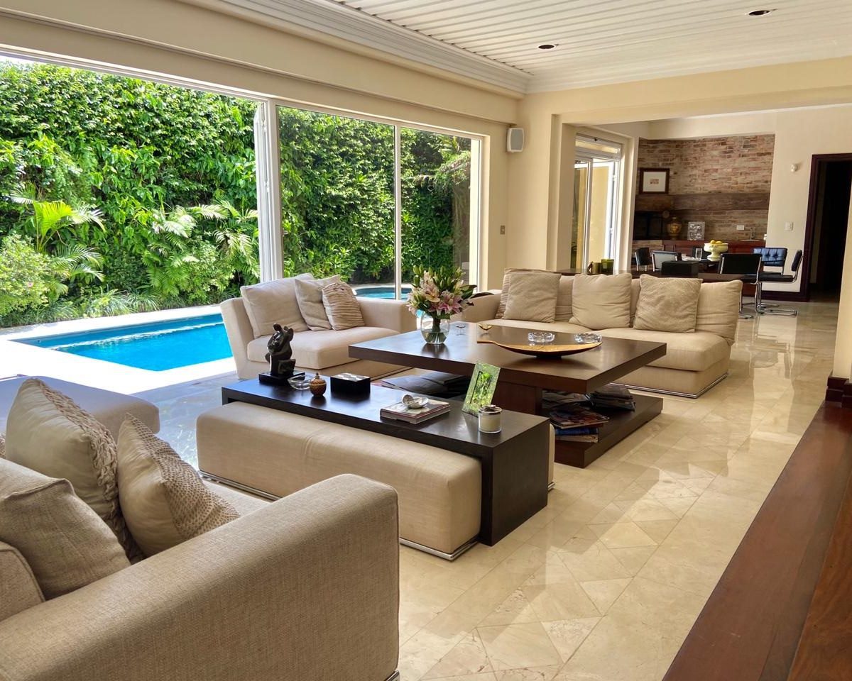 La casa se encuentra rodeada de bellos jardines en los que se puede también disfrutar de la piscina temperada y un rancho con BBQ, así como áreas para relajarse. Dentro del inmueble todas las áreas son muy amplias con excelente iluminación y ventilación natural. Los materiales de construcción son de primera calidad y los detalles de lujo y buen gusto.