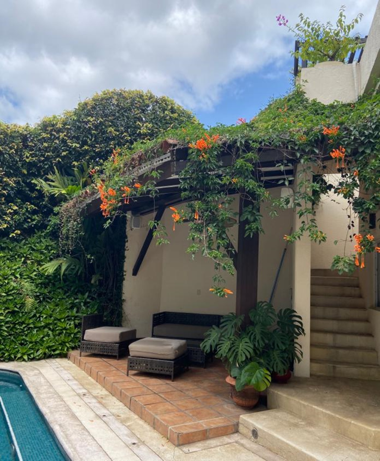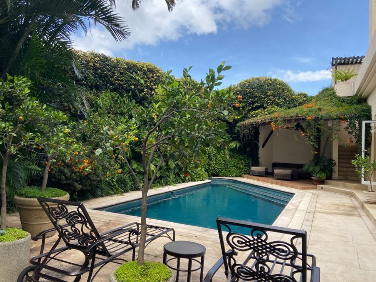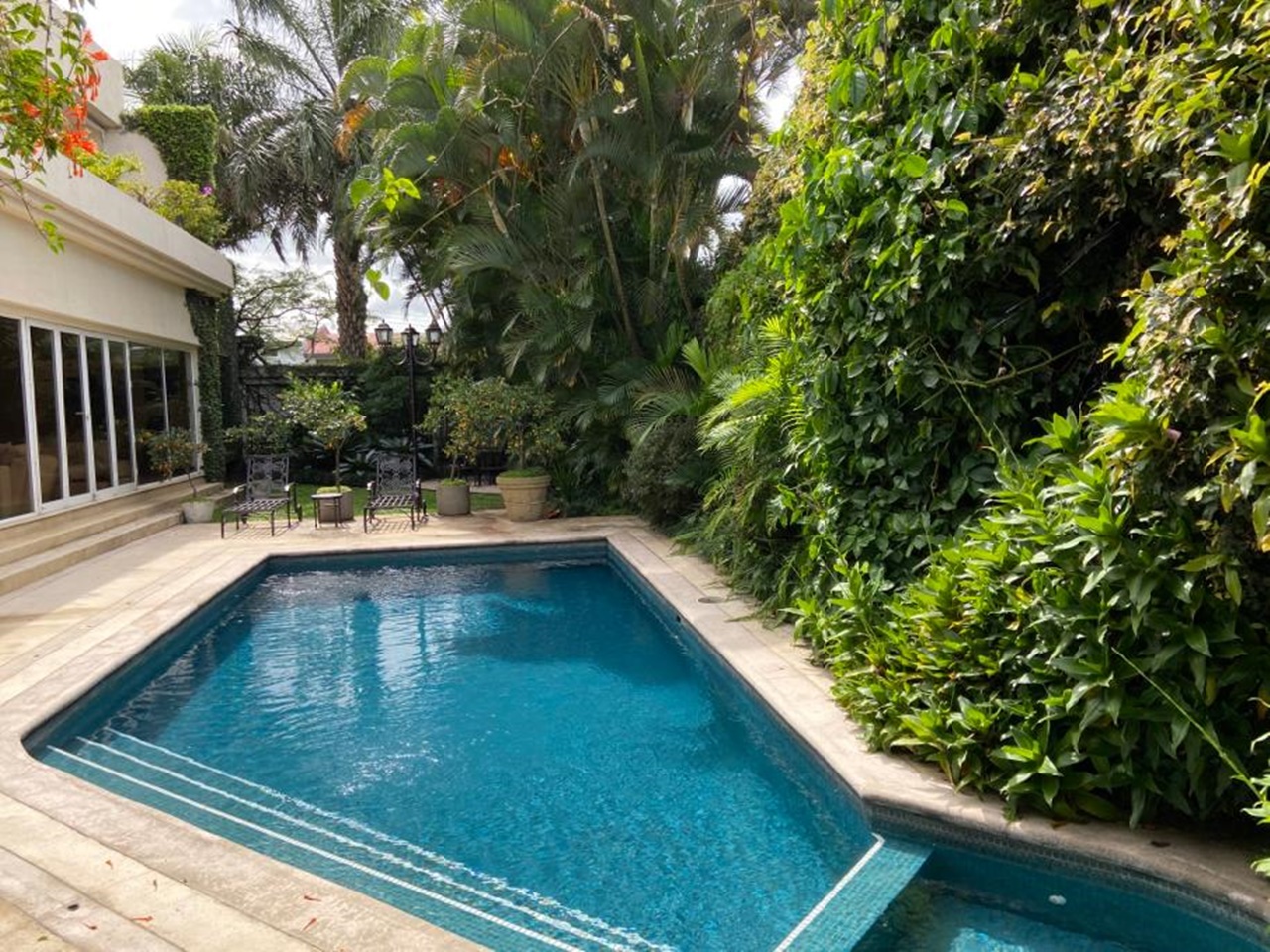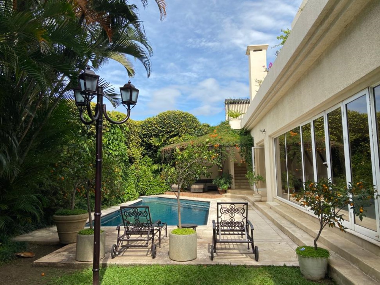 La casa se encuentra rodeada de bellos jardines en los que se puede también disfrutar de la piscina temperada y un rancho con BBQ, así como áreas para relajarse. Dentro del inmueble todas las áreas son muy amplias con excelente iluminación y ventilación natural. Los materiales de construcción son de primera calidad y los detalles de lujo y buen gusto.