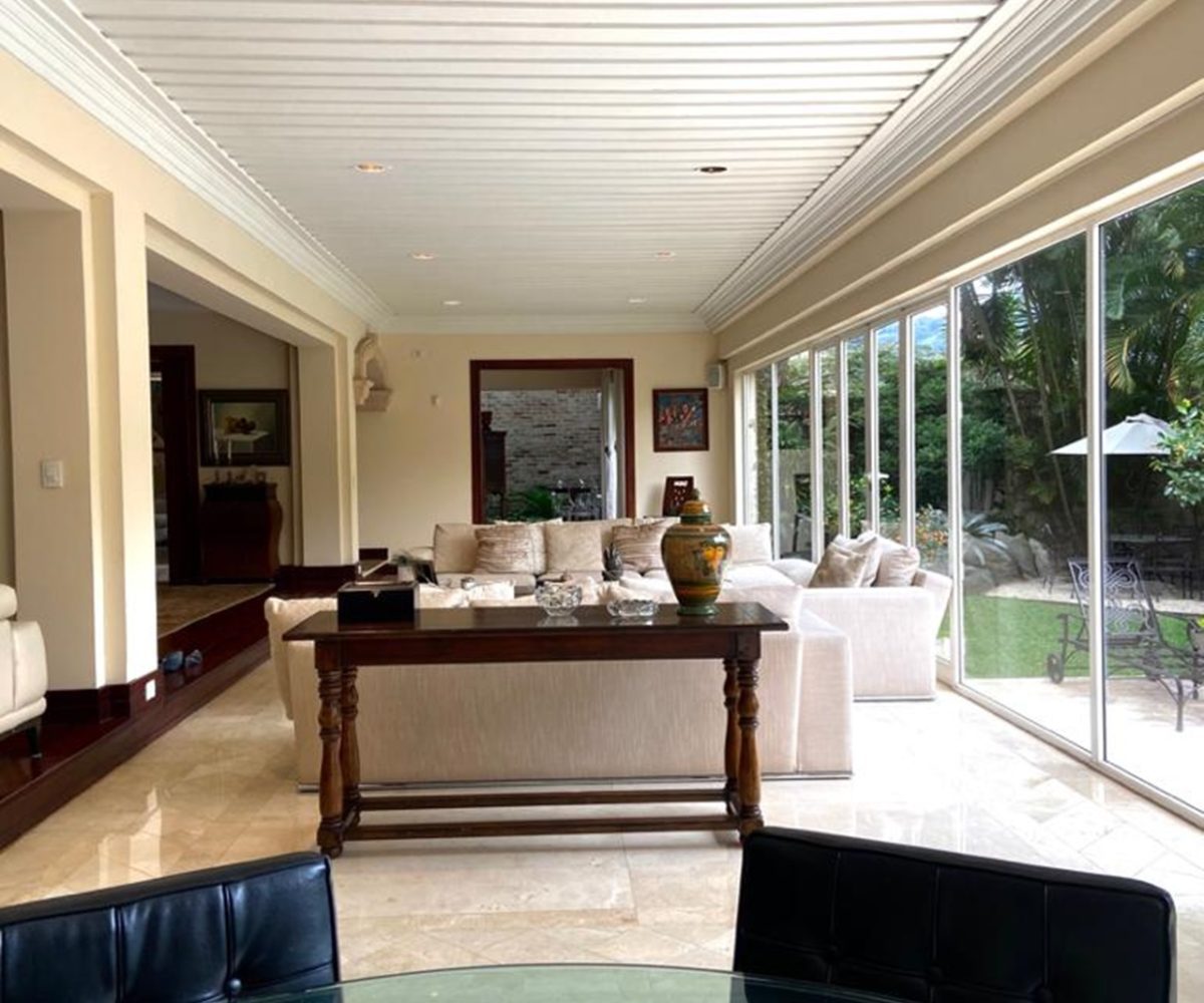 Posee un acogedor y elegante lobby, con puertas de madera fina, cielos altos y ventanales que dejan filtrar mucha luz y que da acceso a la extensa área social con puertas hacia la terraza y área de piscina. También ofrece un antecomedor o estancia para desayunar con una hermosa vista al jardín.