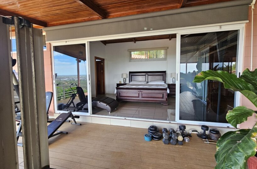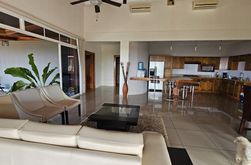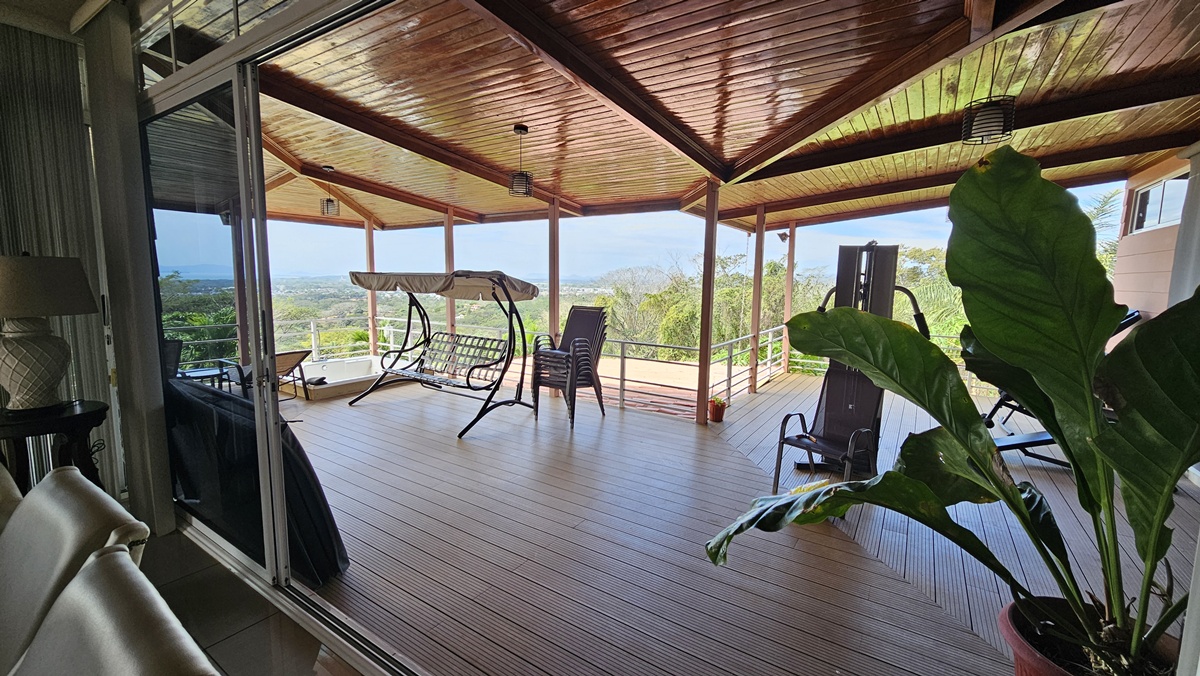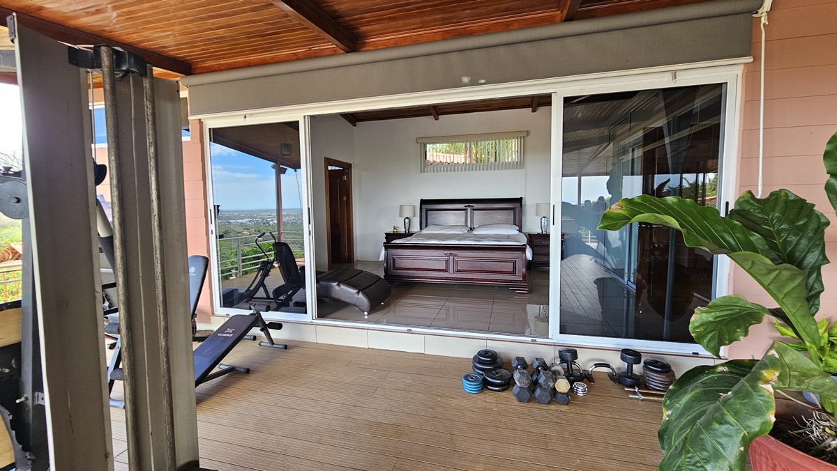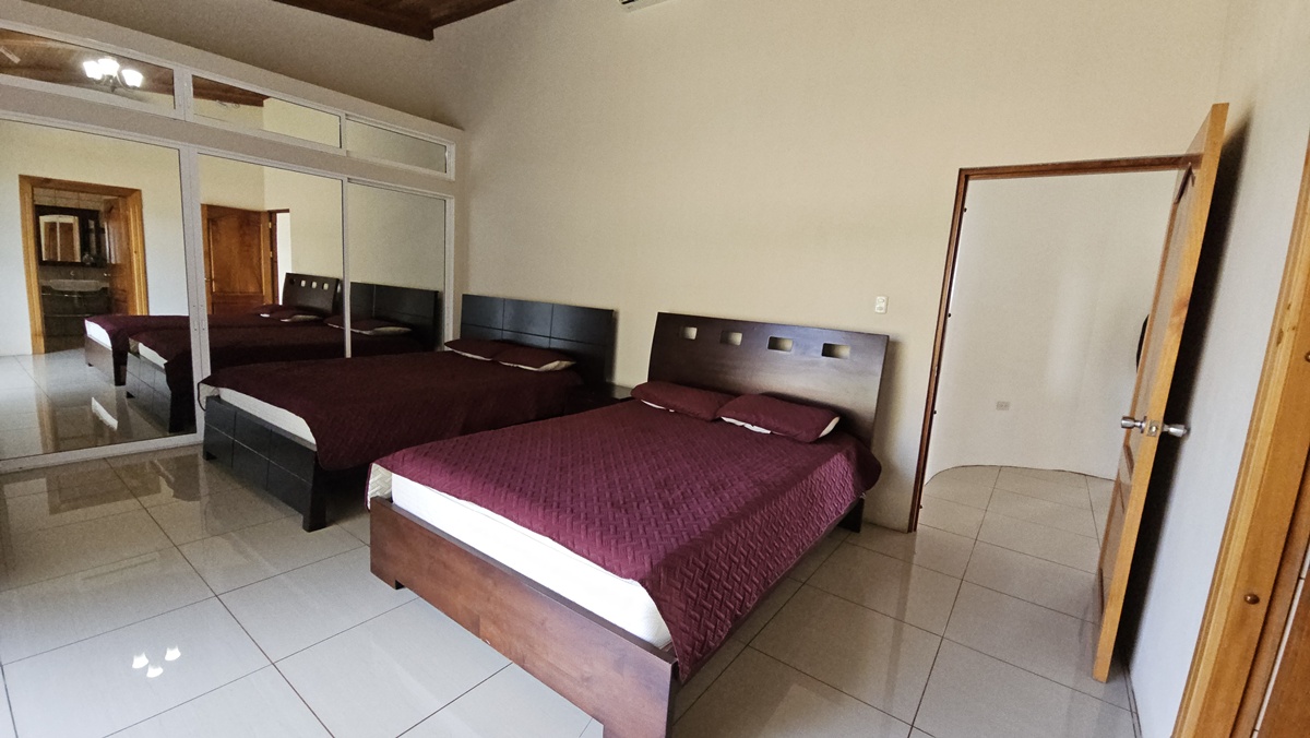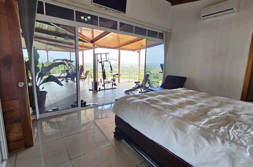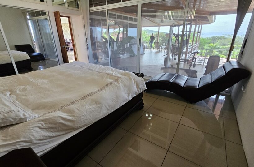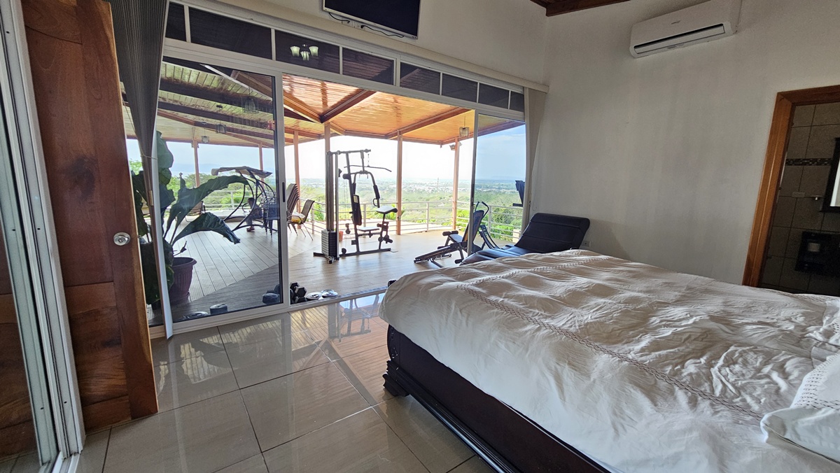 La casa es de 1 piso con 4 dormitorios, 4,5 baños. El principal tiene unas puertas corredizas a la super terraza con esa vista al mar.