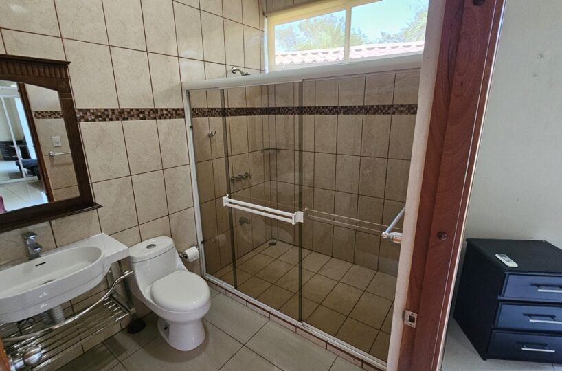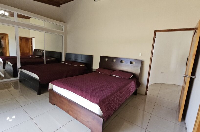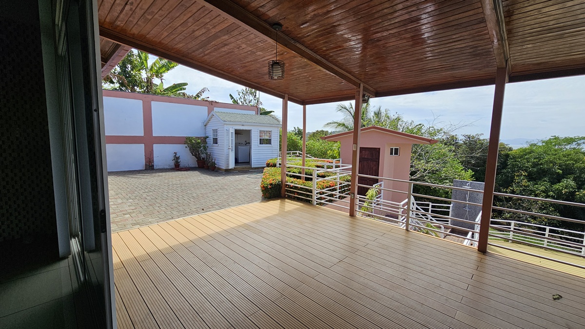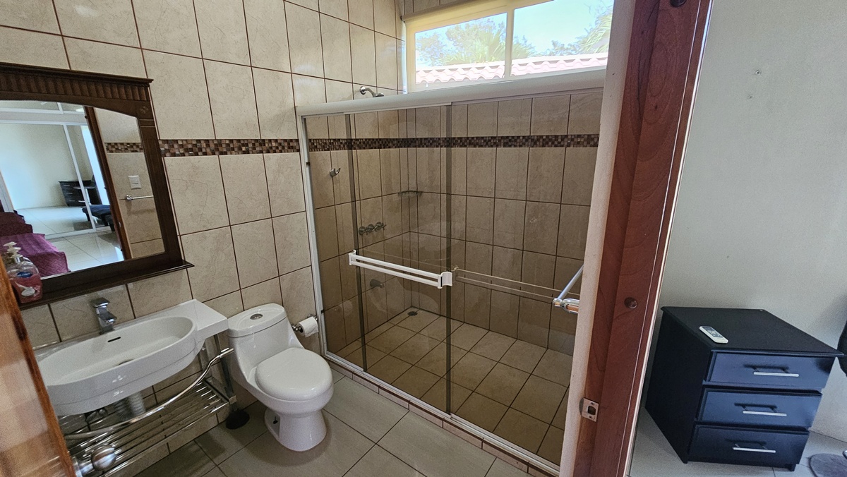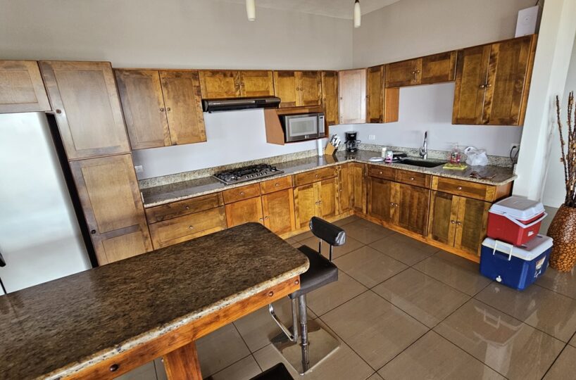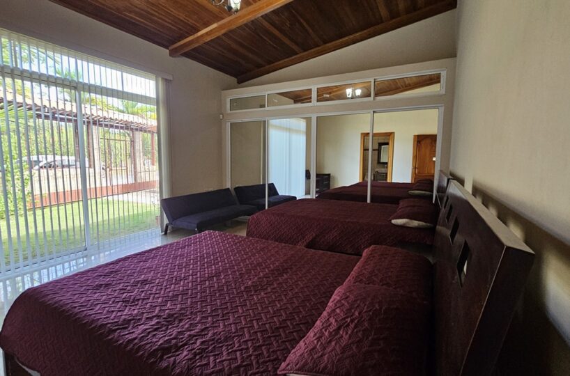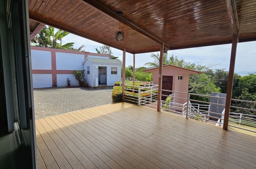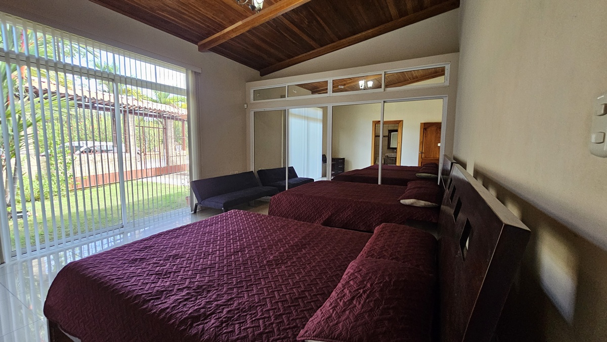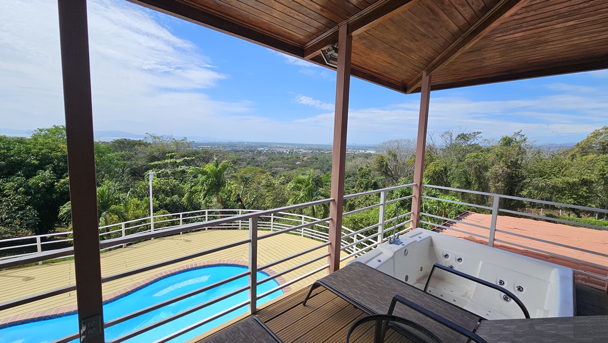 La casa es de 1 piso con 4 dormitorios, 4,5 baños. El principal tiene unas puertas corredizas a la super terraza con esa vista al mar.