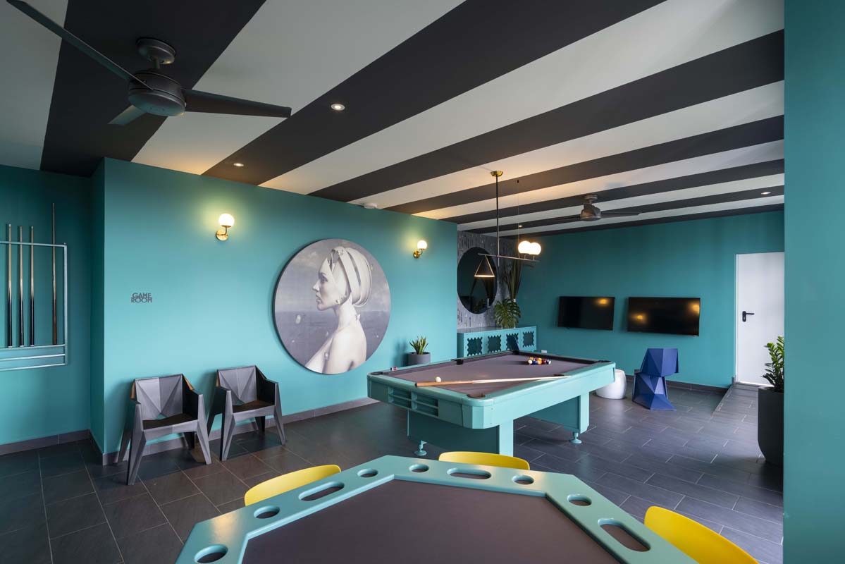 It has a social area with an open concept dining room and kitchen, balcony, two bedrooms and two bathrooms. The master bedroom with A/C, walk-in closet and bathroom.