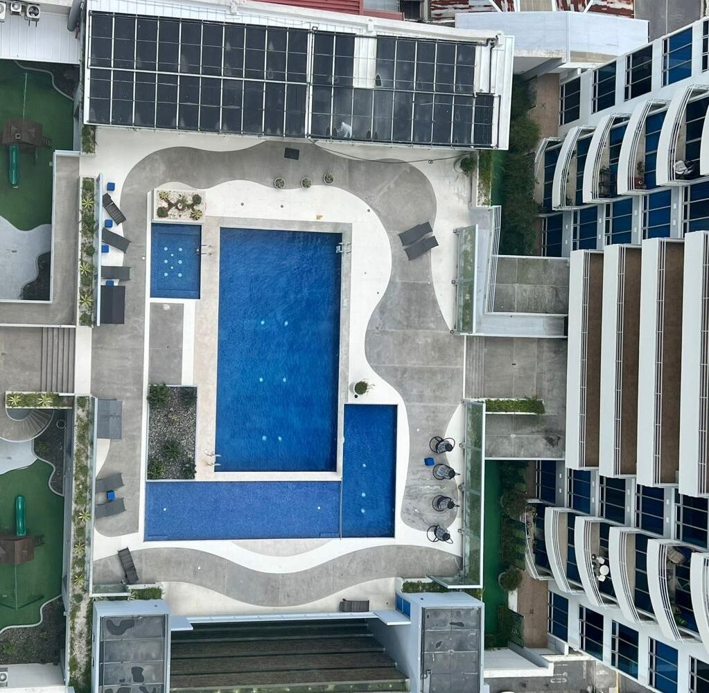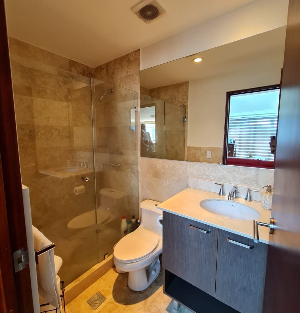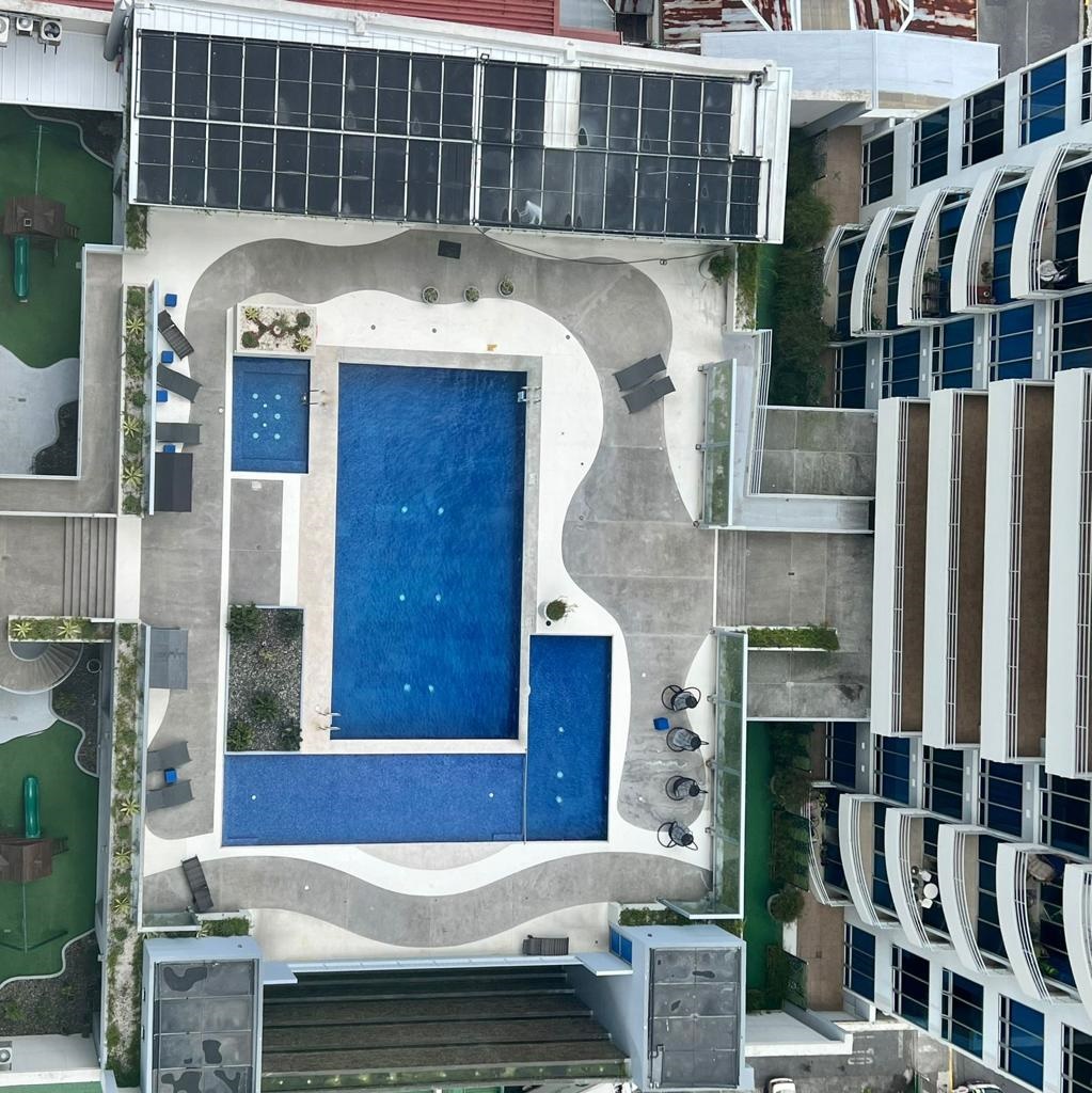 The condominium offers various amenities and services such as 24/7 security with fingerprint access, spacious lobby with two front desks, elevators for greater comfort and security of the condominium owners. To enjoy and relax, it offers a swimming pool for adults and children with a tanning area (sun deck), jacuzzi, playground, gym, jogging track, theater, and parking for visitors, as well as green areas.