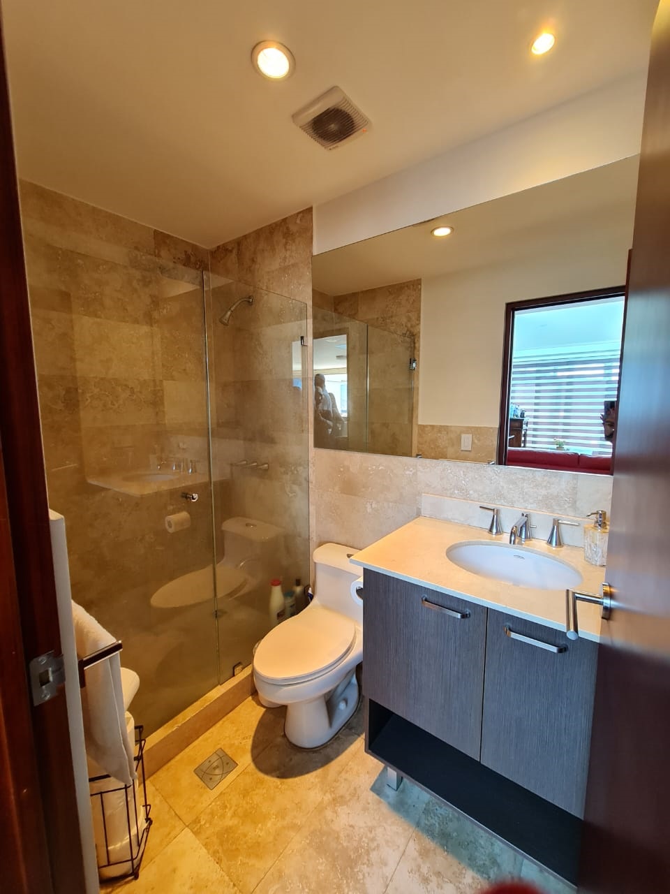 Este elegante apartamento cuenta con una bellísima terraza que le permite una vista impresionante desde varios puntos del inmueble.  Posee una amplia sala comedor con ventanales que le aseguran mucha frescura y luz natural, cocina integrada con muebles finos, alacena y área para desayunar, área de lavandería, 2 parqueos y bodega.  Ofrece además 3 confortables y amplios dormitorios, cada uno con baño completo, sala de T.V. entre otros.