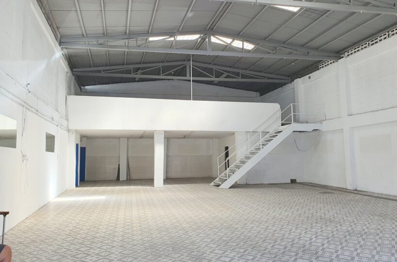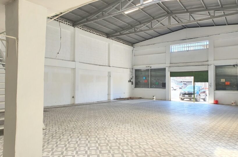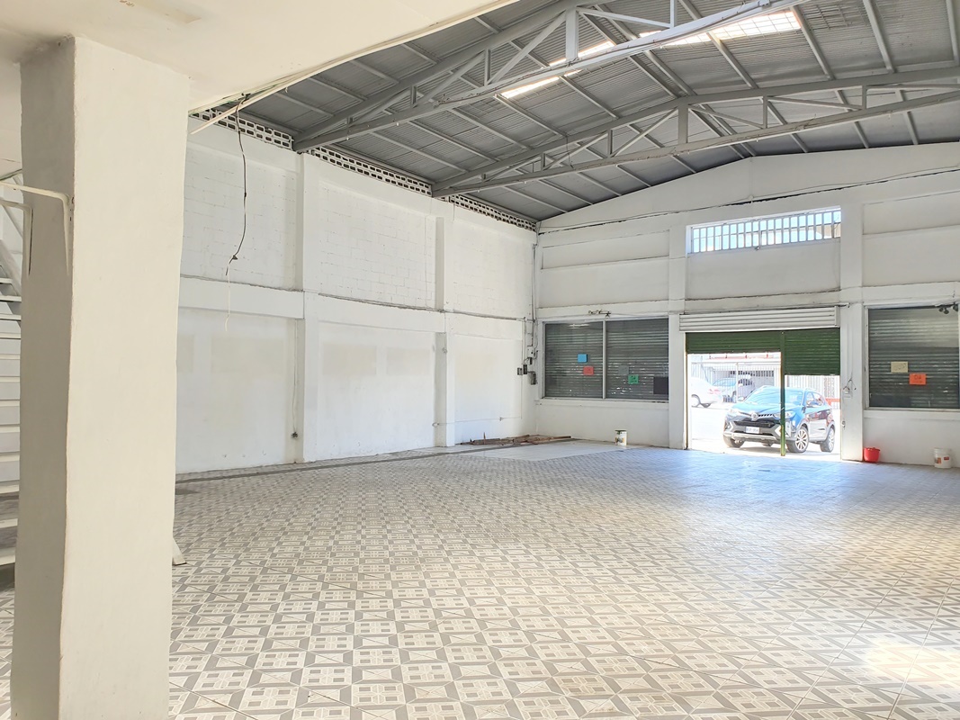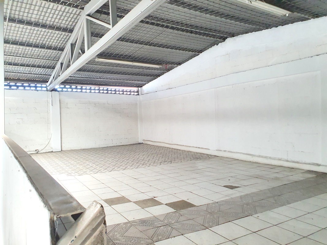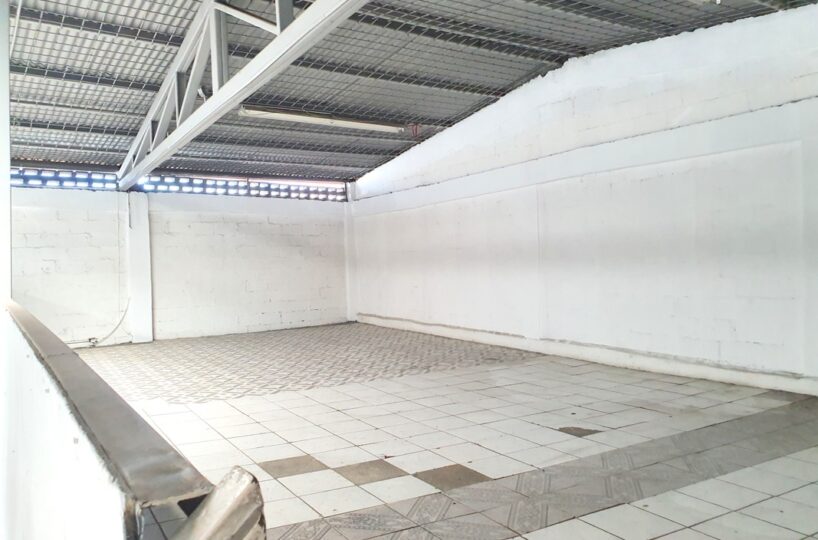 Posee un baño, parqueo para 5 automóviles y altura a cumbrera de 6-8 metros. No ofrece electricidad trifásica ni andén. Ideal para comercio o almacenamiento.