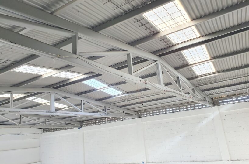 Cuenta con baño, estacionamiento para 5 autos y altura de cumbrera de 6-8 metros. No ofrece electricidad trifásica ni andén. Ideal para uso comercial o de almacenamiento.