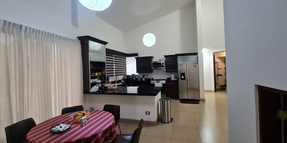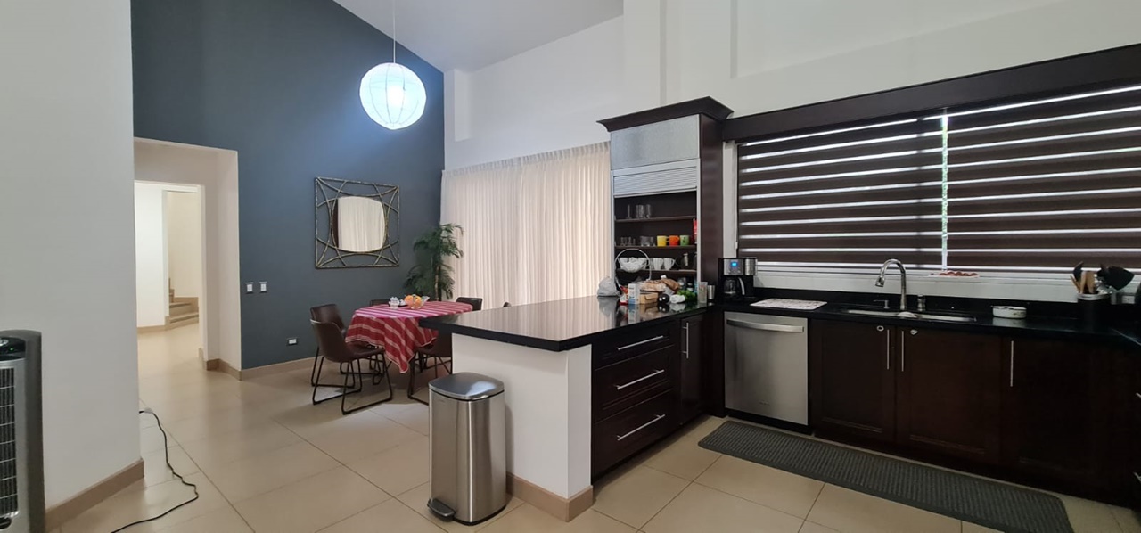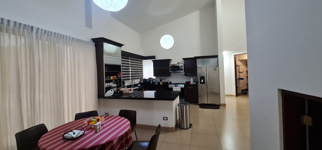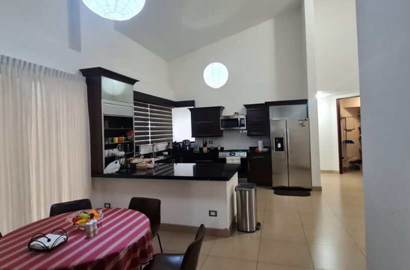 El inmueble cuenta con una amplia área social, ½ baño para visitas, una hermosa terraza, cocina de concepto abierto con muebles finos, alacena y área para desayunar, sala de T.V., área de lavandería, cuarto de servicio completo y estacionamiento para 4 vehículos. Adicionalmente cuenta con 4 cómodos dormitorios, el máster con walk –in closet y 2 baños completos, entre otros.