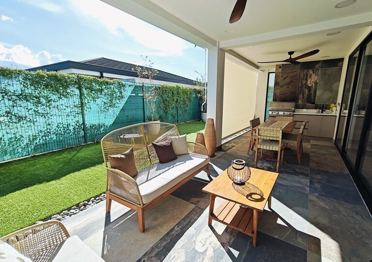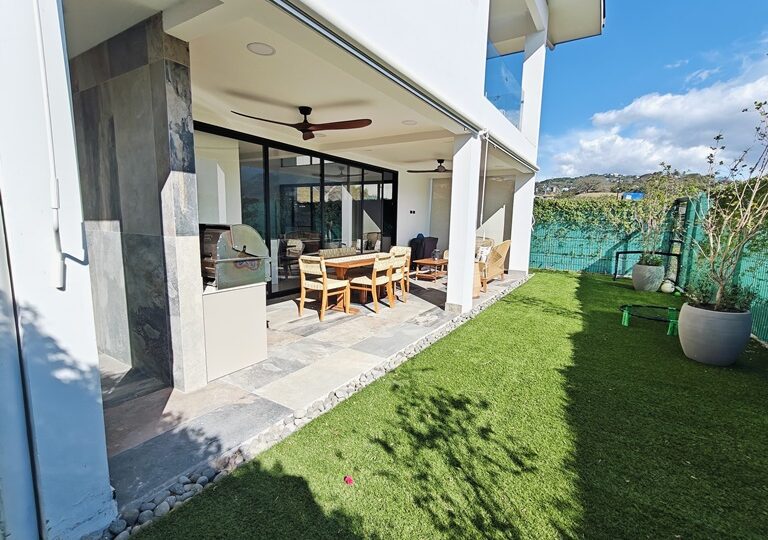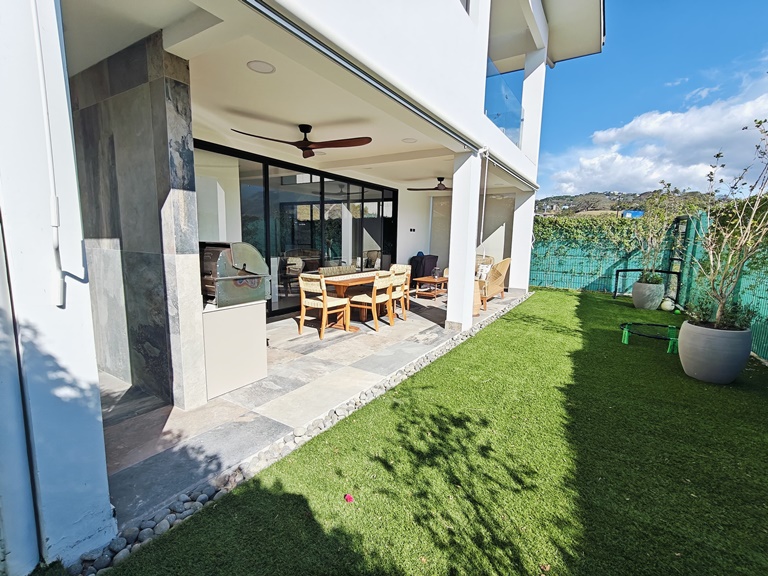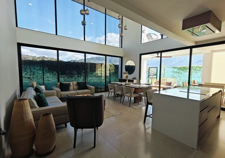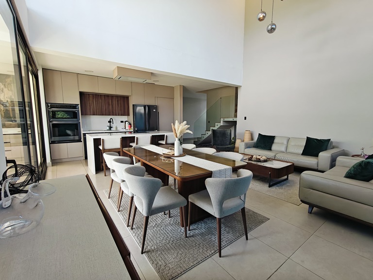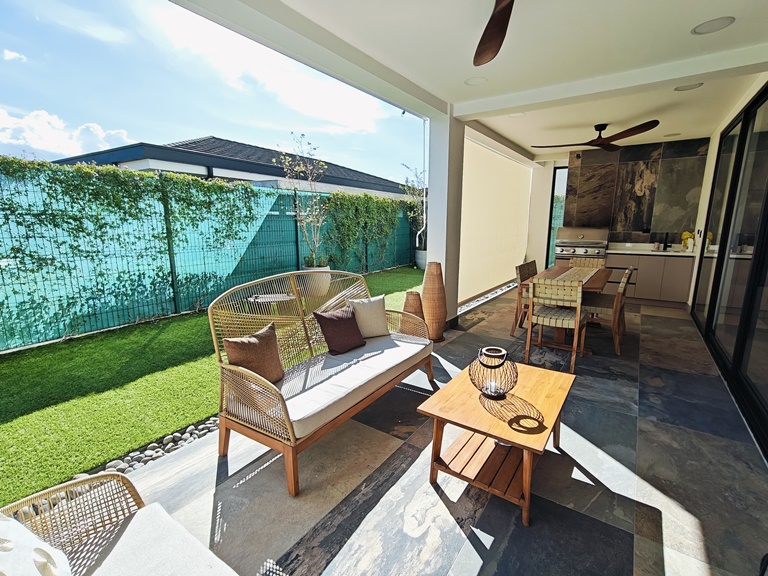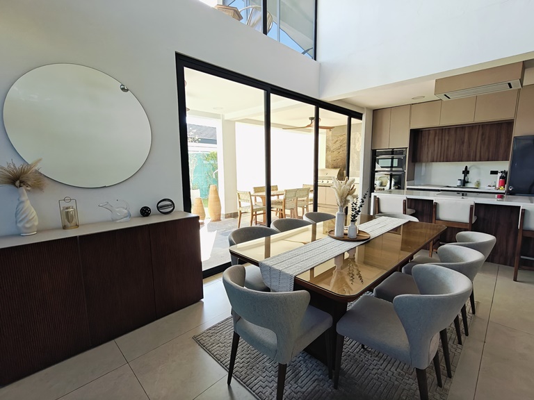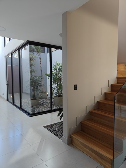 Ofrece amplia area social con sala, comedor, medio baño de visitas y una hermosa terraza que da acceso al jardin. Cuenta con cocina integrada con muebles y suficiente espacio de almacenamiento, area de lavanderia, amplia bodega interna, estacionamiento para 4 vehiculos (2 bajo techo) y una sala de TV. Ademas ofrece una oficina con baño que puede convertirse en cuarto de servicio.