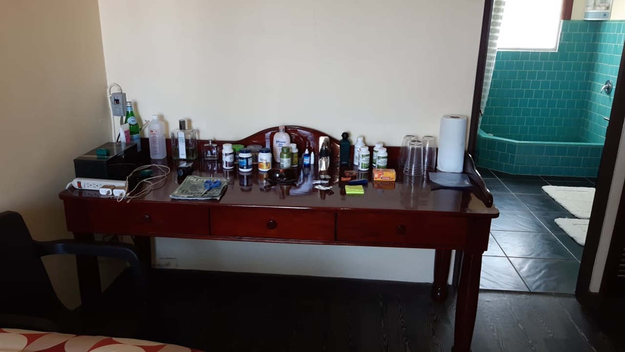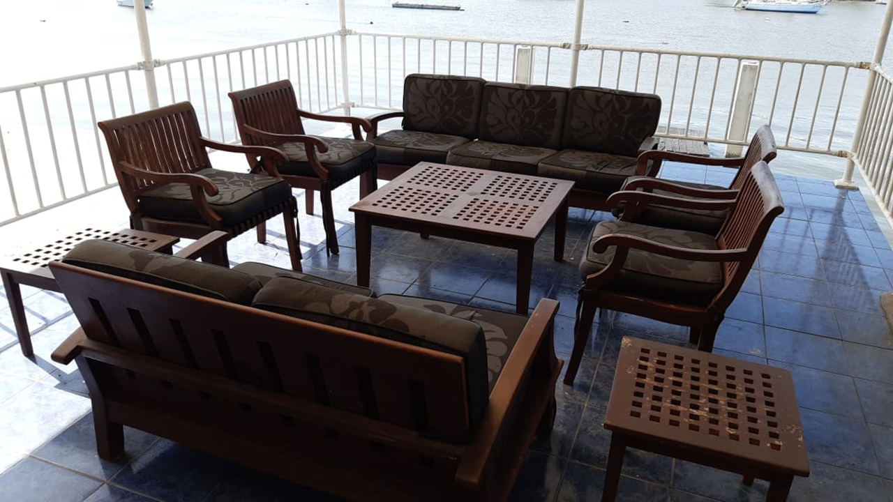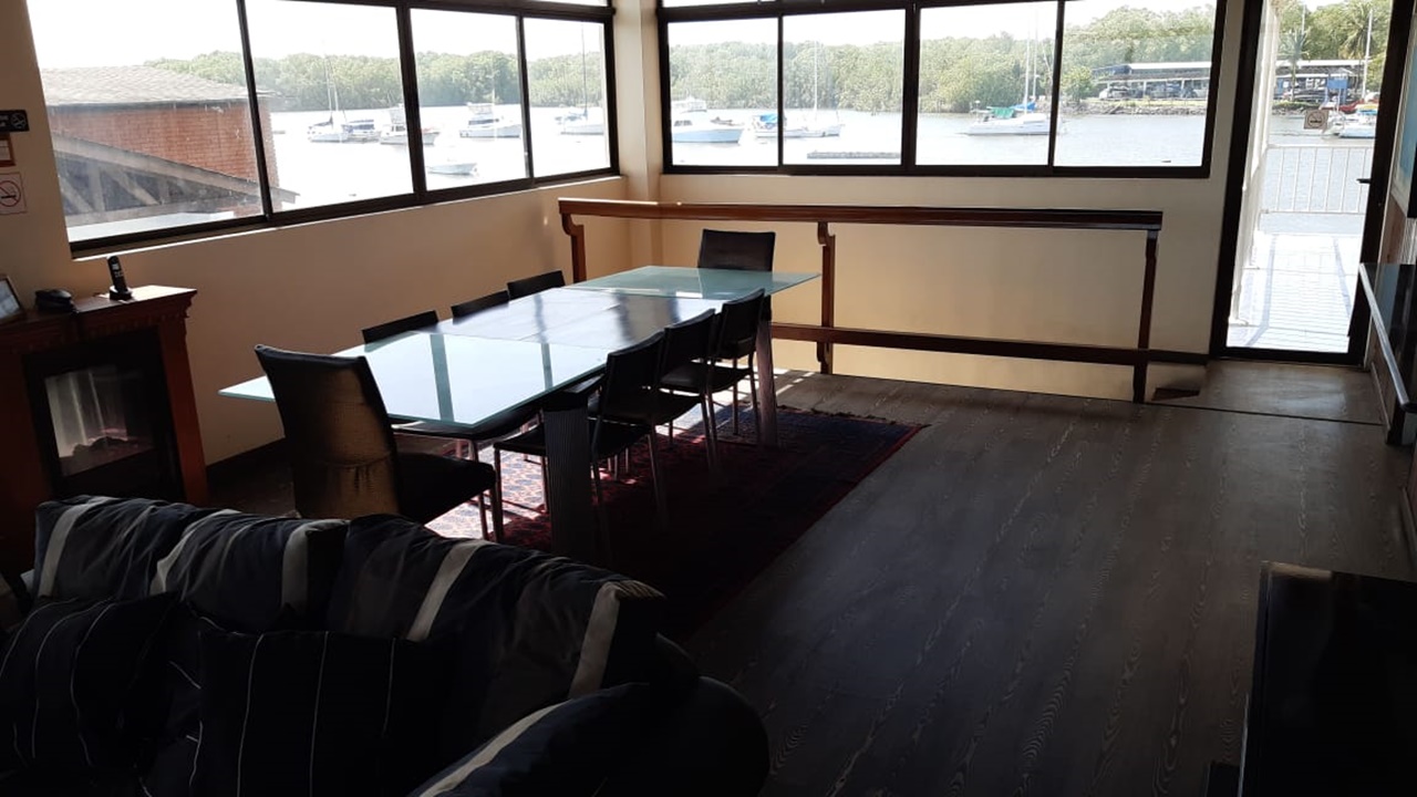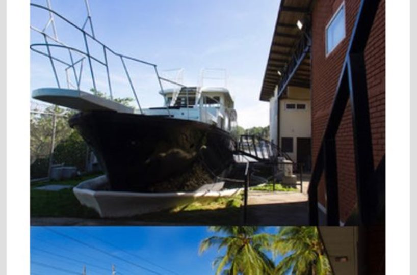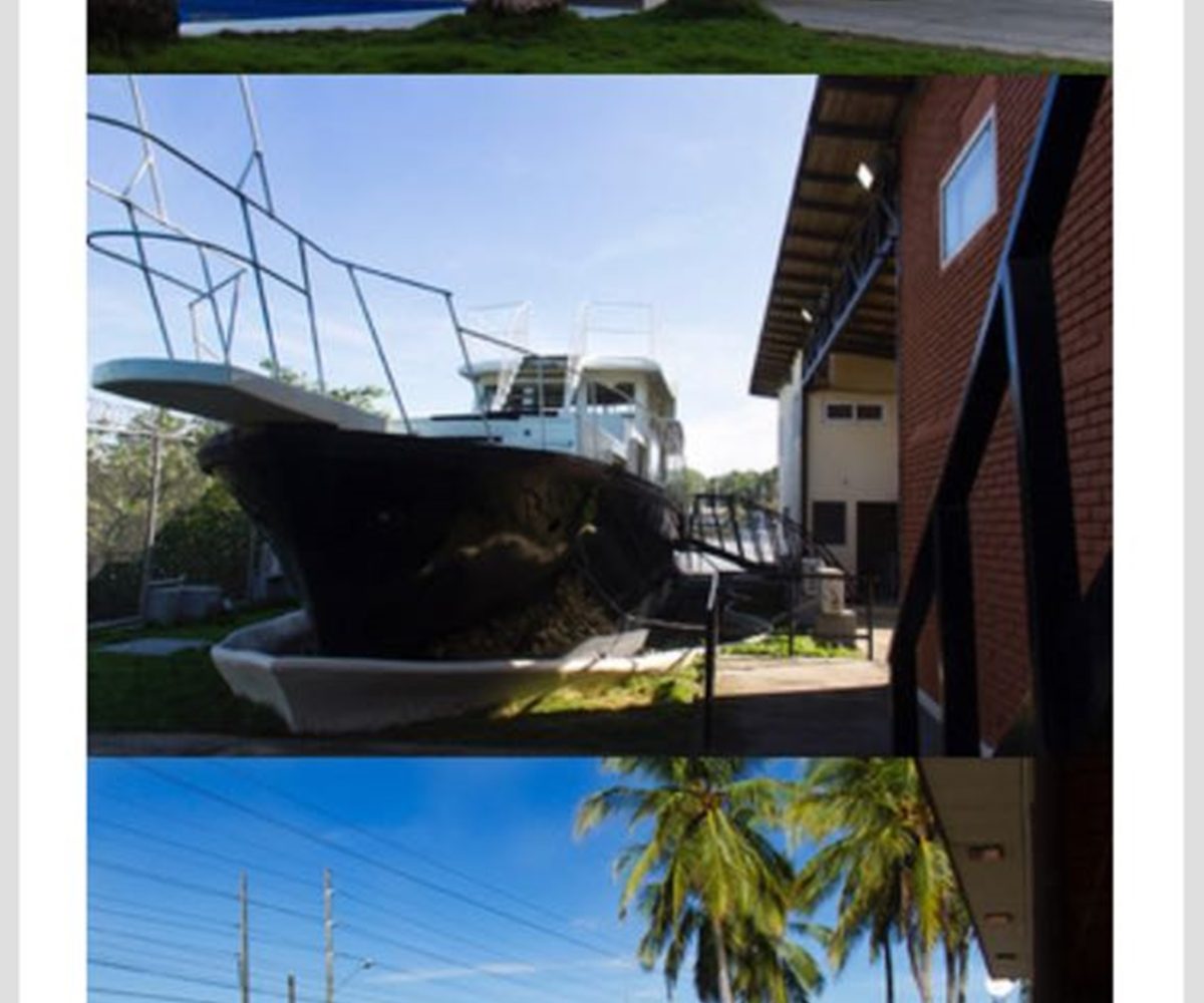 En el área exterior tiene un yate de 70 pies que posee tres habitaciones y tres baños completos, sala grande, dos comedores y un salón de fiestas en el techo para 30 personas. El yate está estacionario en tierra, y NO navega.