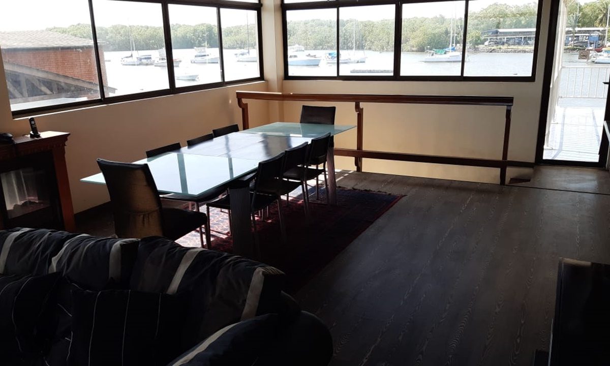 In the outdoor area you have a 70 foot yacht that has three bedrooms and three full bathrooms, a great living room, two dining rooms and a party room on the roof for 30 people. The yacht is stationary on land, and is NOT sailing.