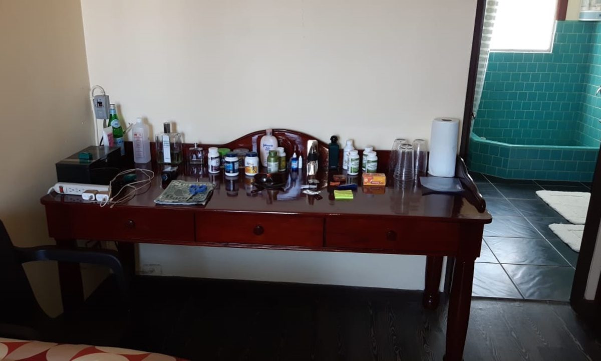 The home has 4 bedrooms and 4 full baths plus an additional bathroom in the pool area. In another sector it has 3 bedrooms with a bathroom (currently this is where the guard sleeps). It offers a spacious living and dining room with a balcony at the back with spectacular views of the sea and Italian cuisine in Pompeii red and black marble.