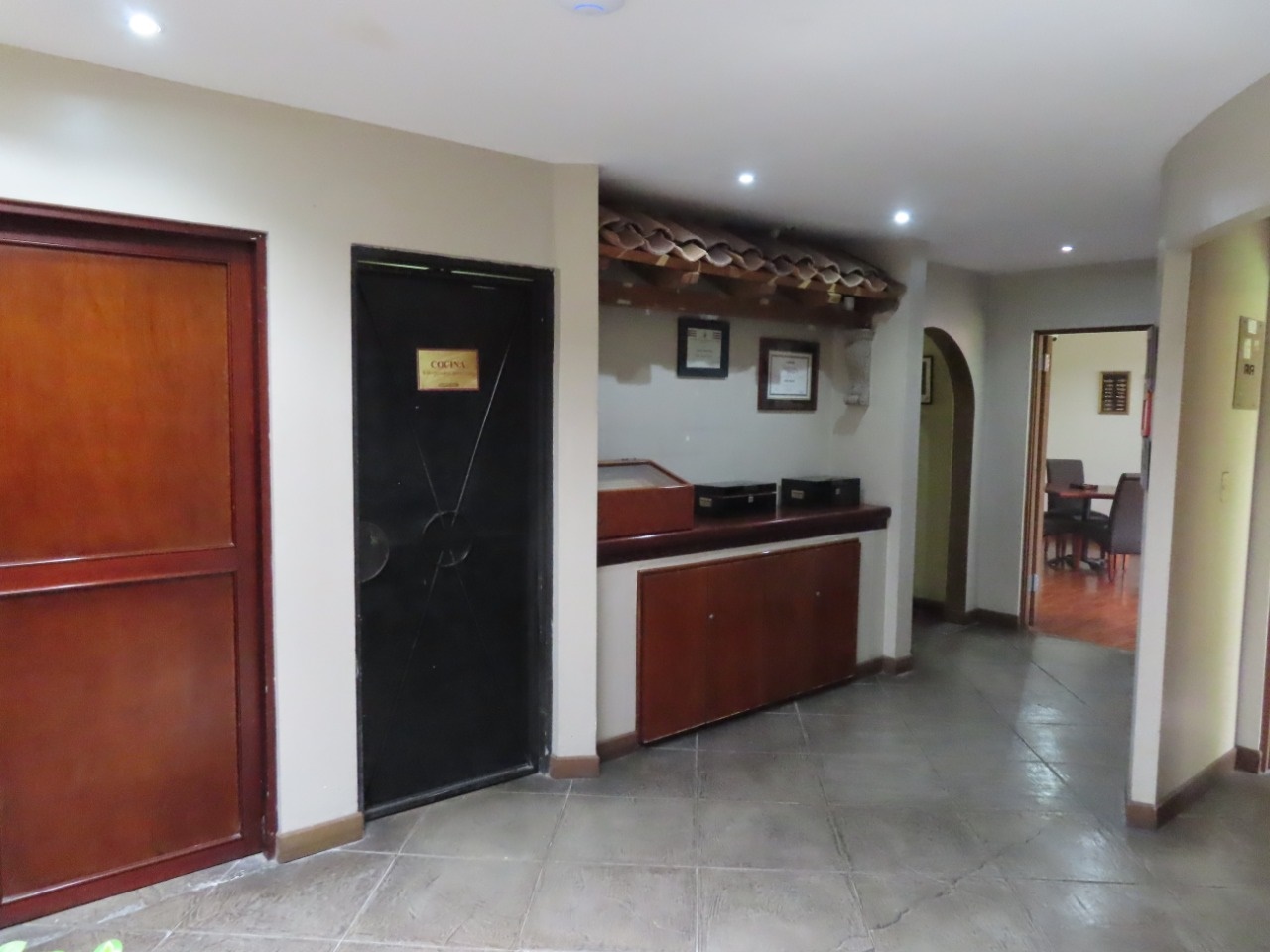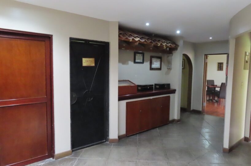 Consta entre otros de área de recepción, 8 oficinas, cocina, 4 baños, 2 amplios salones multiuso, garaje bajo techo para 2 vehículos y estacionamiento interno para 5 automóviles además de un hermoso patio con área verde.