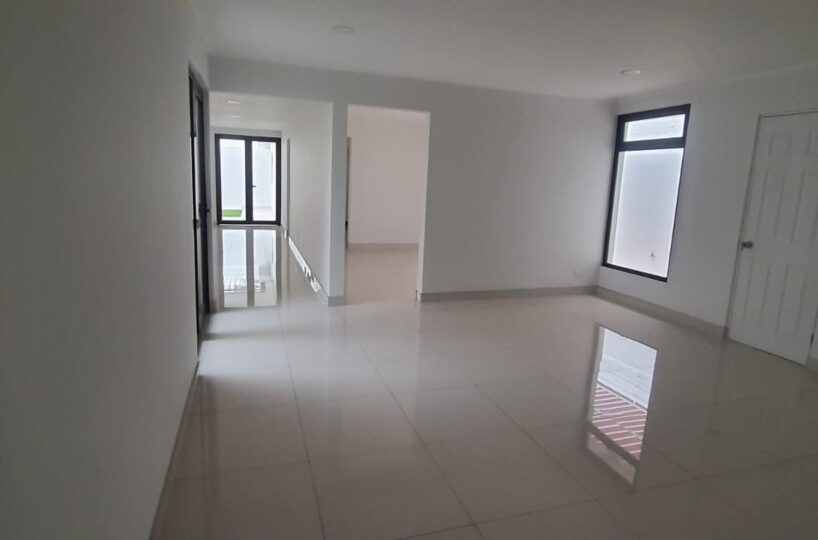 Posee una amplia sala comedor, cocina, lavandería, una pequeña terraza y jardín, así como área cerrada de parqueo para 1 vehículo y 3 espacios adicionales al frente del inmueble. Adicionalmente ofrece un ascensor externo.