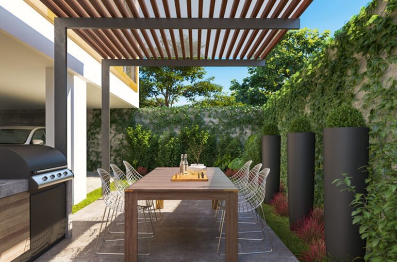 El condominio cuenta con seguridad 24/7, jardines internos y área de BBQ.