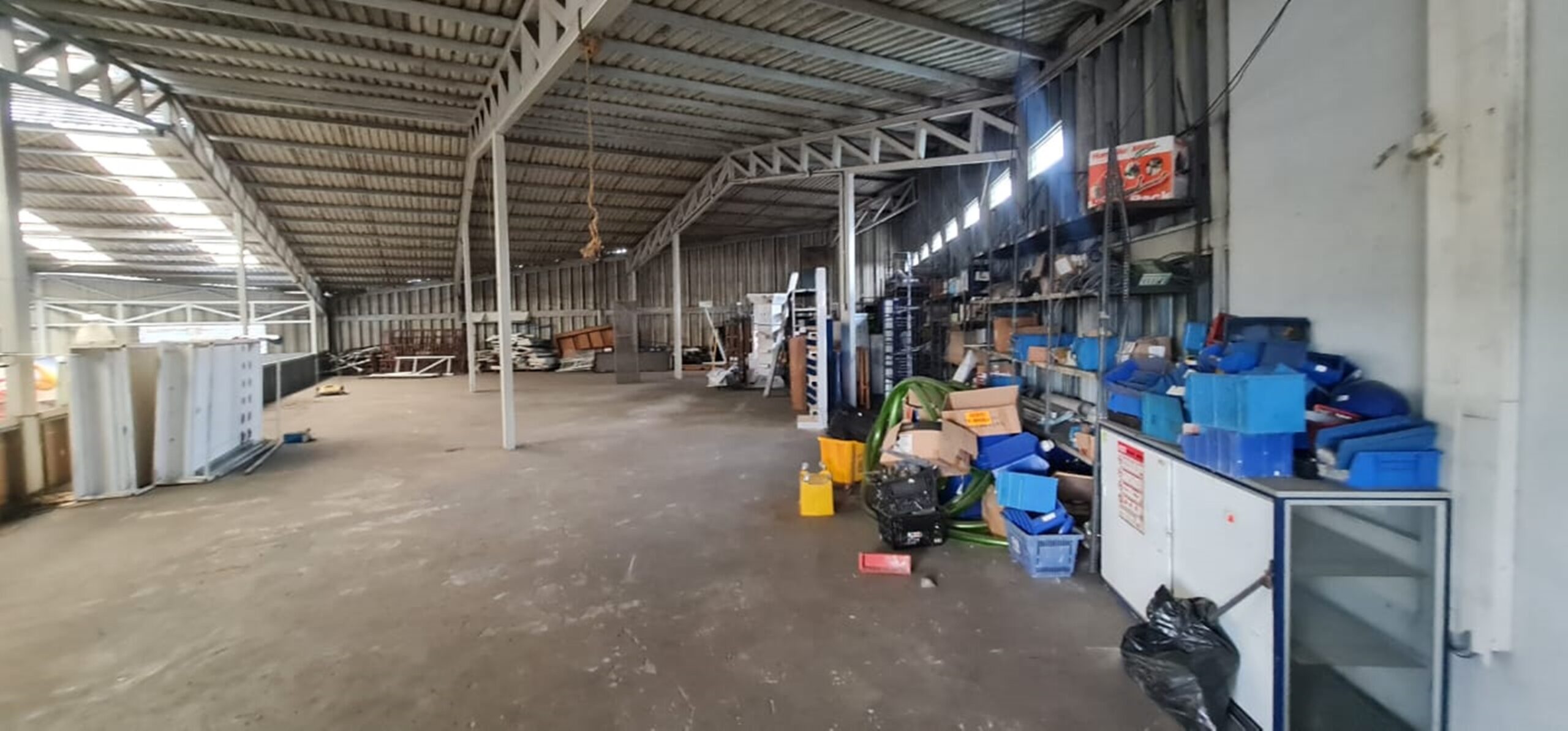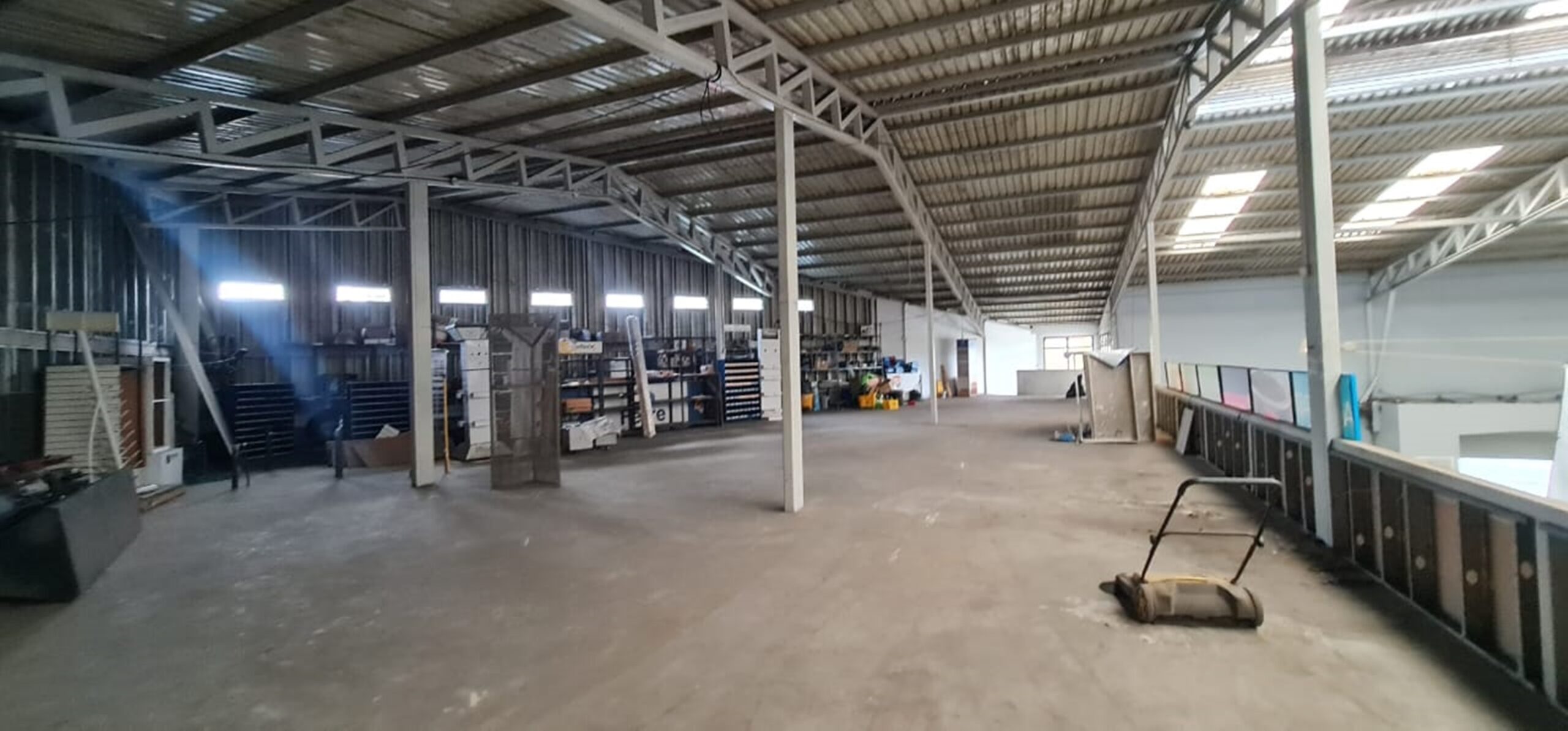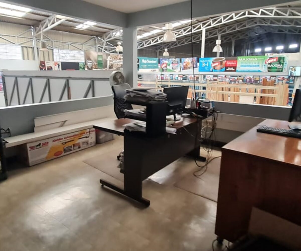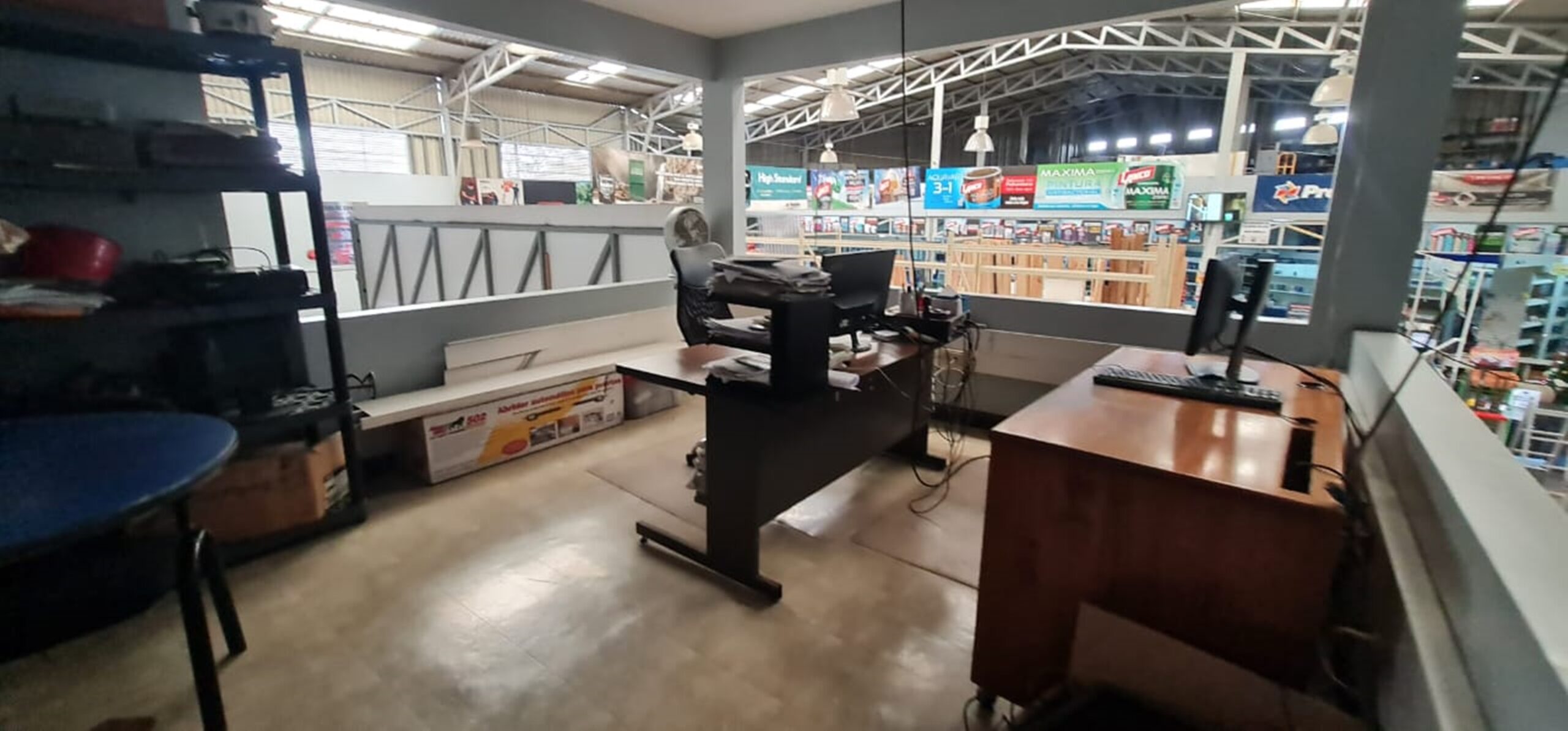 On the first floor it has a very large, completely open area and on the second it has an office and service area.
