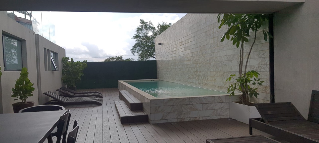 It is an elegant apartment that has a comfortable dining room, fresh and with lots of natural light, guest bathroom, open concept kitchen with fine furniture, breakfast area and ceramic hob, laundry area and parking for one car. In addition, it offers a comfortable bedroom with a full bathroom and a spectacular view.