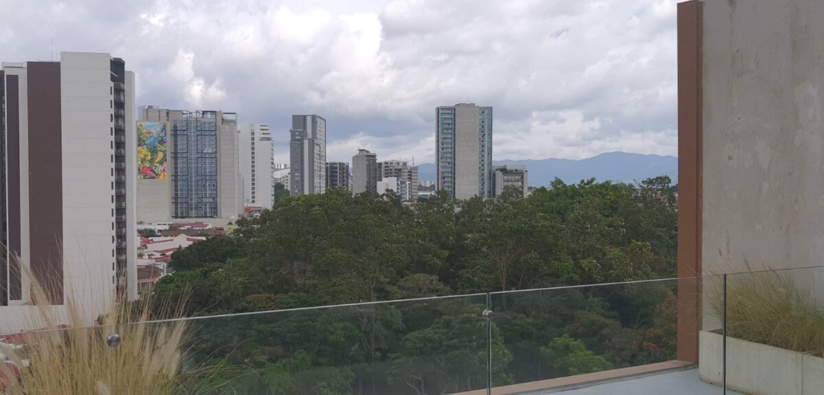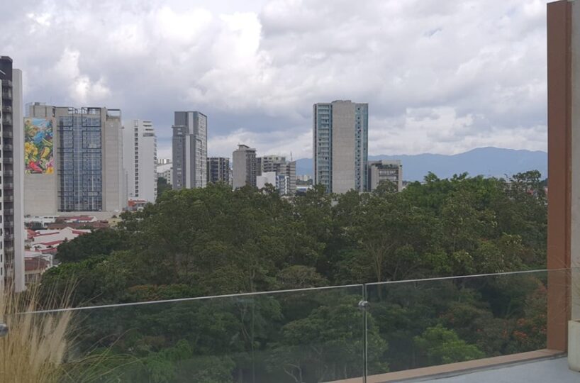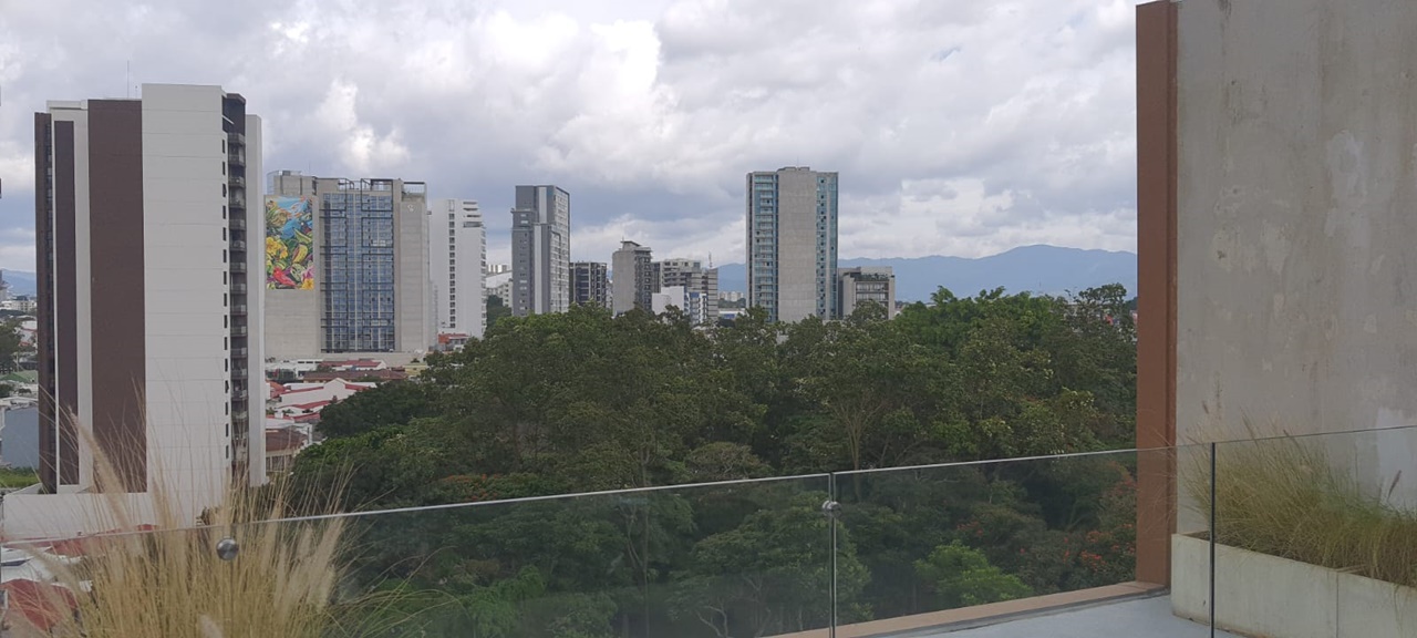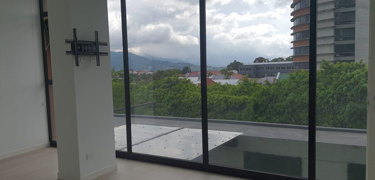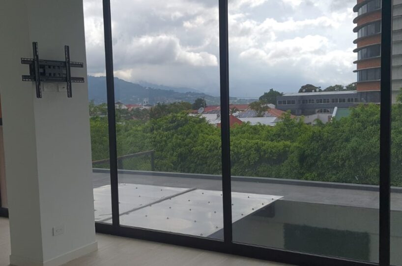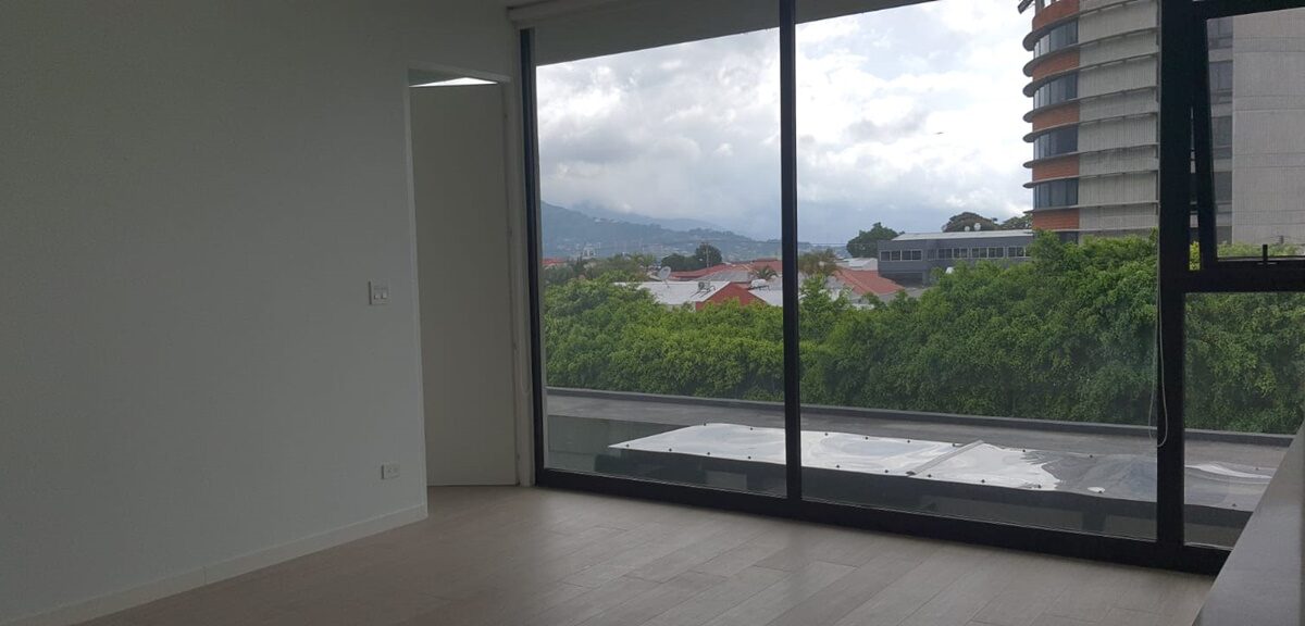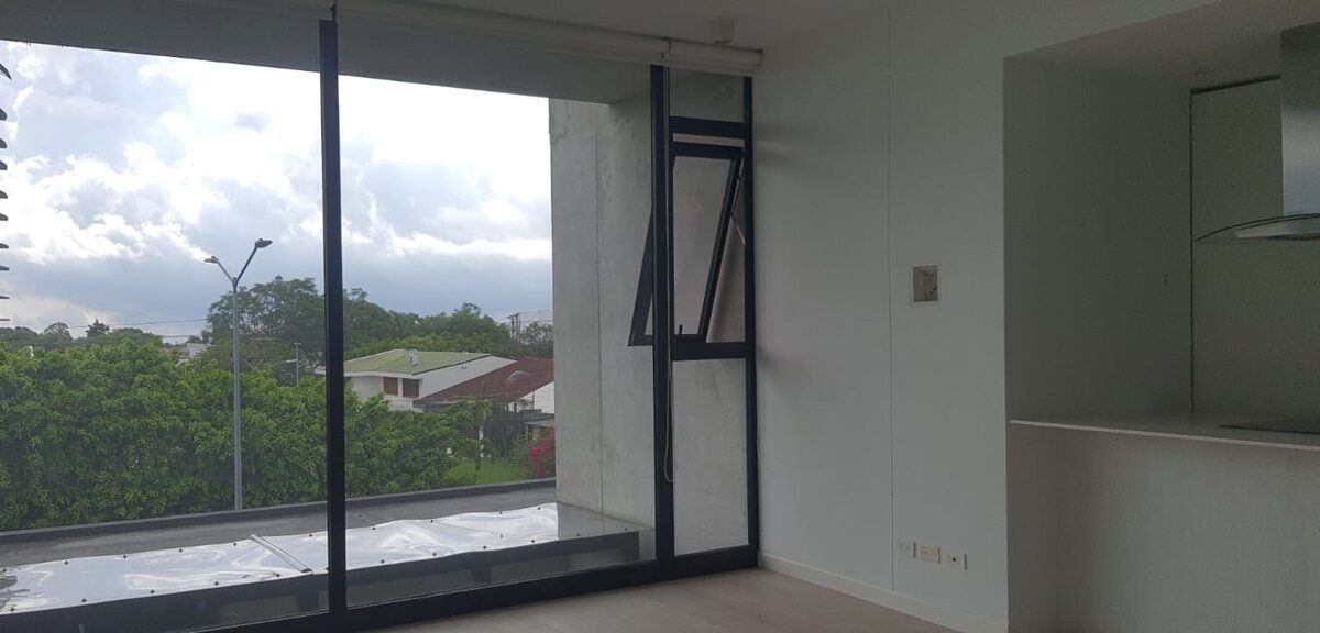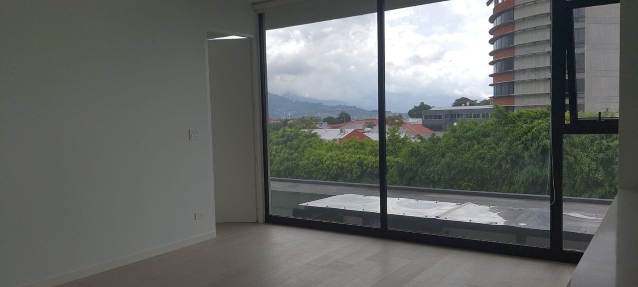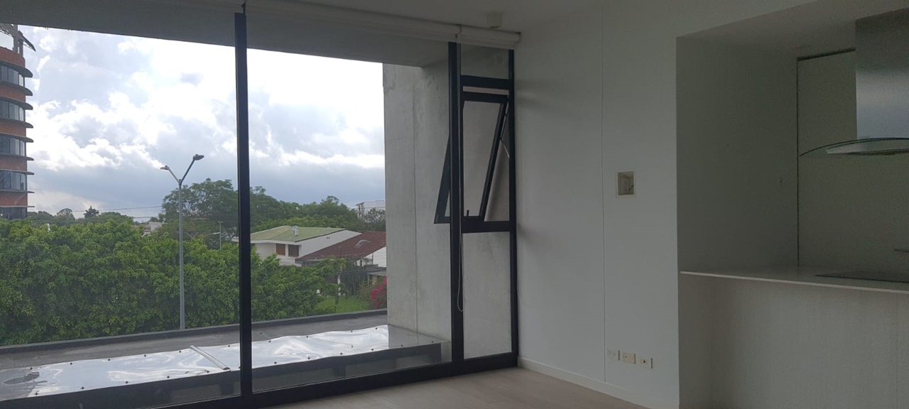 Es un elegante apartamento que cuenta con una confortable sala comedor, fresca y con mucha luz natural, baño de visitas, cocina integrada con muebles finos, desayunador y plantilla de vitro cerámica, área de lavandería y parqueo para un automóvil.  Además, ofrece un cómodo dormitorio con baño completo y vista espectacular.